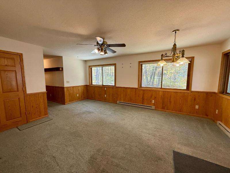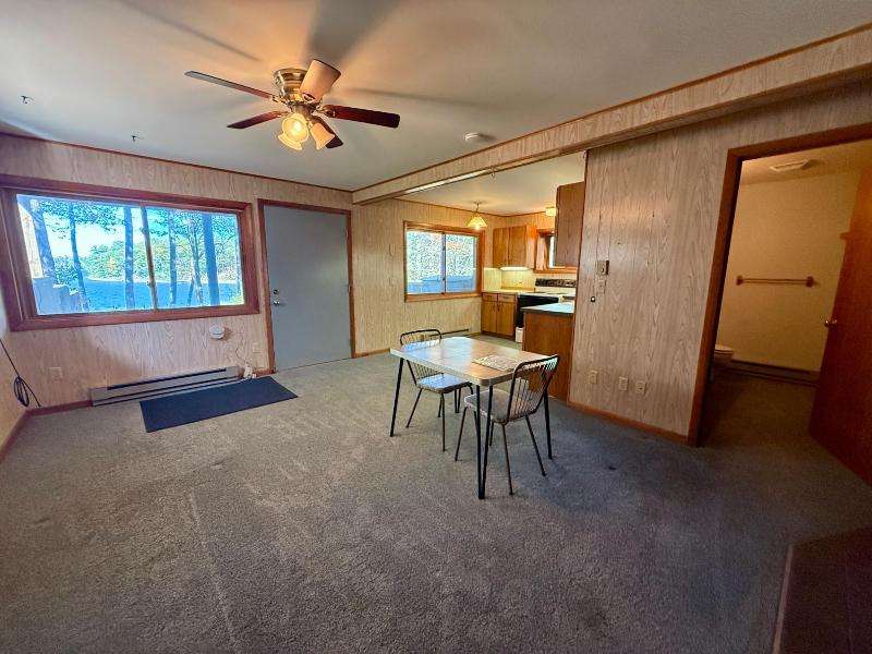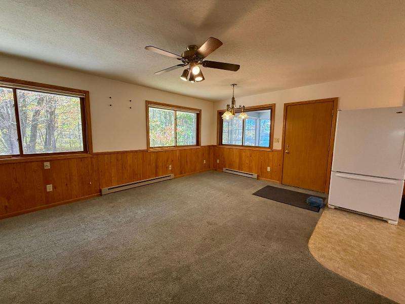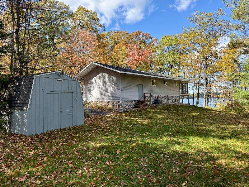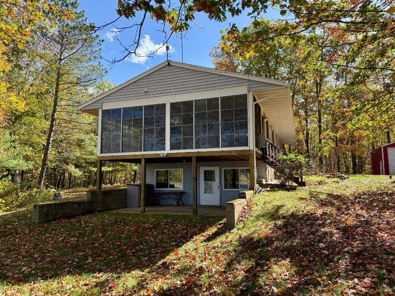 Plummer Lake Opportunity! Tucked at the end of the road, this rare 5.5-acre retreat offers ultimate privacy, wooded seclusion, and incredible sand frontage. It includes an extra vacant parcel for added privacy or future resale. A private boat landing gives you direct access to the lake. The home has a quirky but functional layout with one bedroom and two kitchens--easily modified by turning the lower kitchen into a lakeside bedroom. A newer 2-bedroom septic is already in place. Enjoy expansive views from the large three-season room. Two pole barns and a shed provide ample storage. Focus on what you can't change: great privacy, private landing, gentle slope, sandy shoreline, and stunning lake views. With some thoughtful updates, this property can become your ideal Northwoods??????? escape.