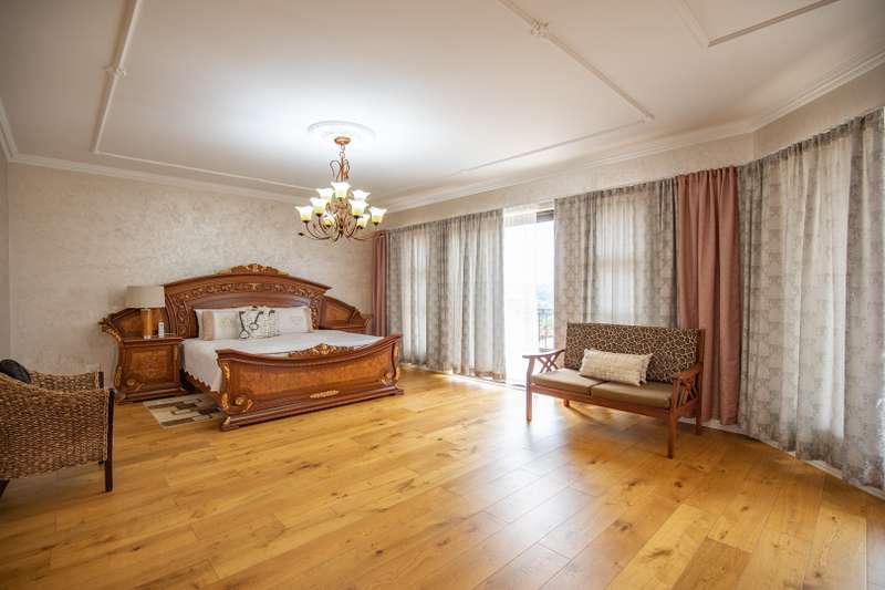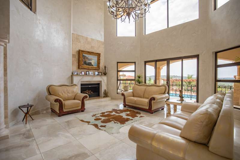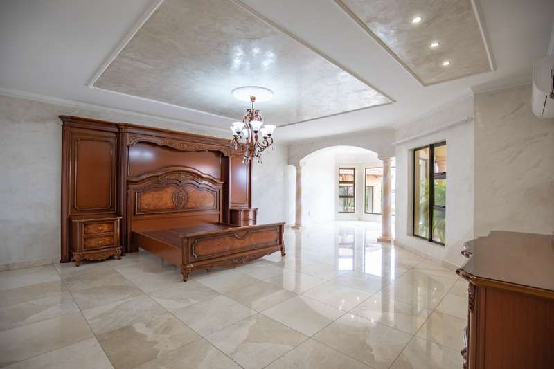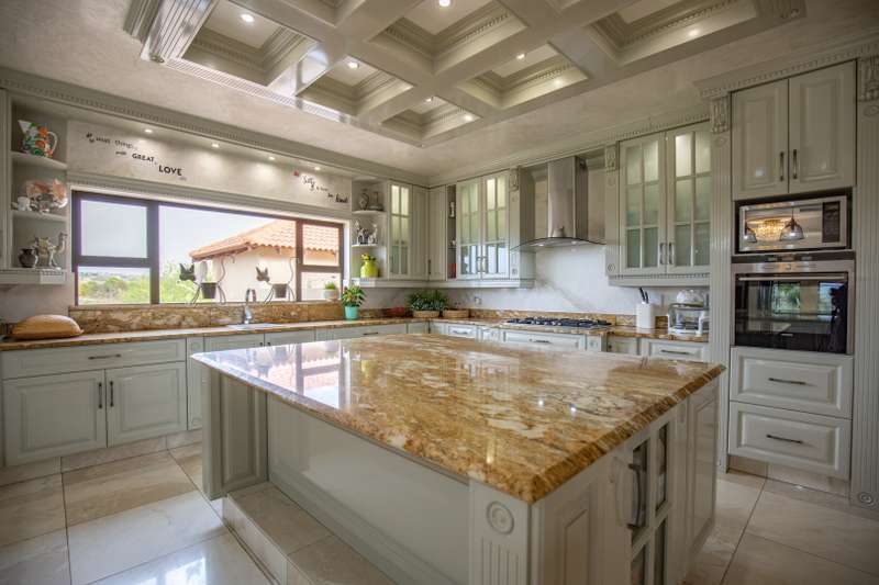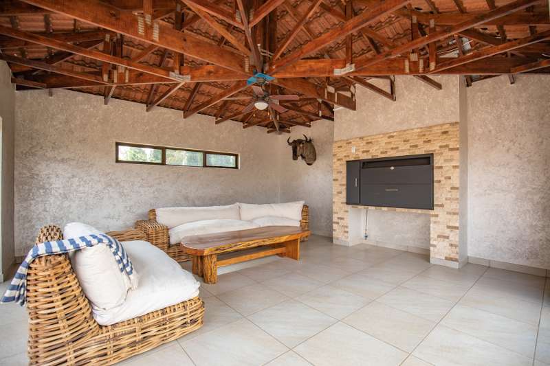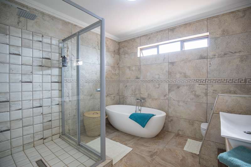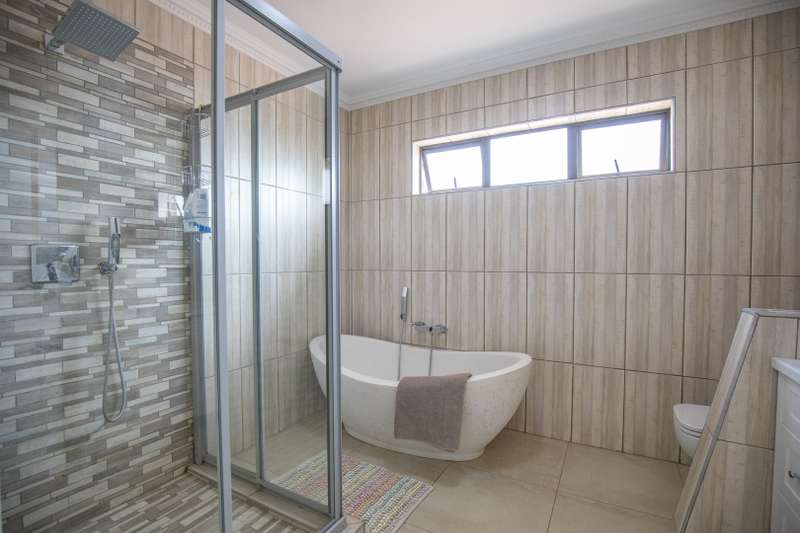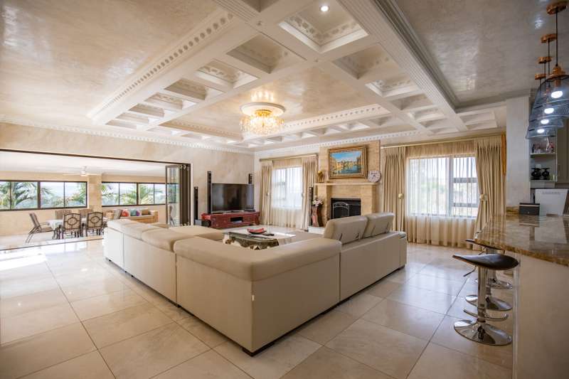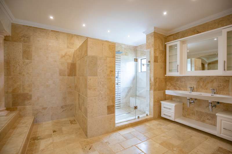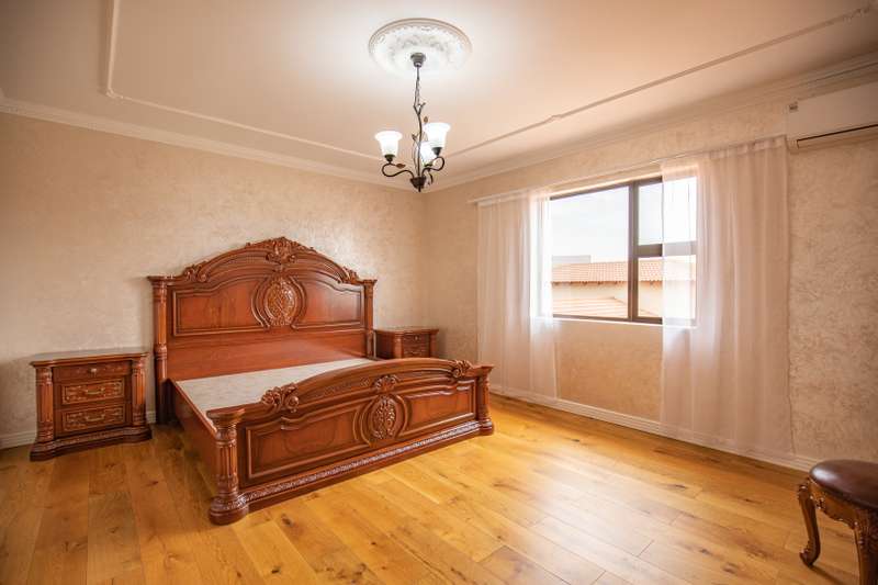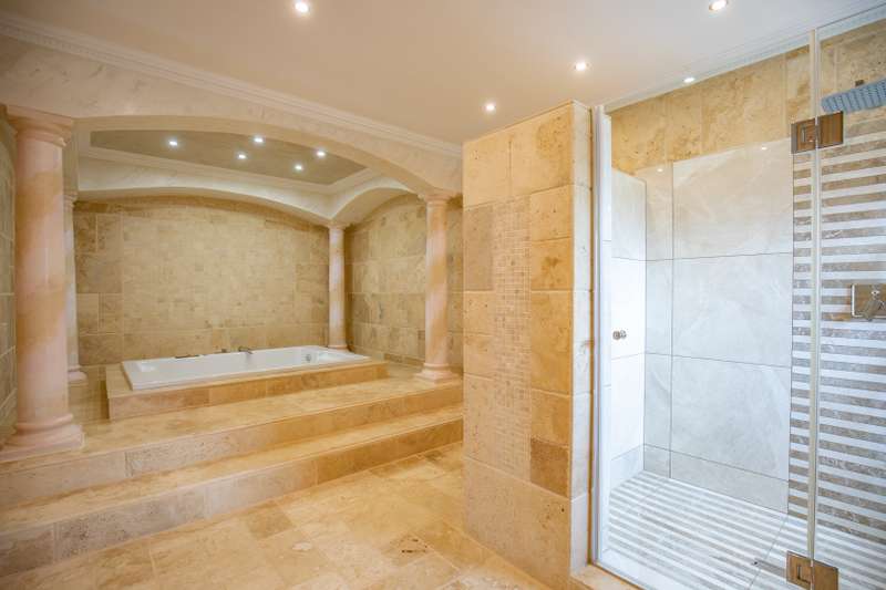 Looking at this property you might believe that you are is a chateau, on the Amalfi coast in Italy overlooking the Mediterranean see. This magnificent property offers luxurious finishes bound believe with uninterrupted views over Mooikloof and the Zwawelpoort valley. Solid oak front- and garage doors, marble flooring throughout almost the entire home, solid wooden flooring fitted in all bedrooms, a combination of stucco and "wet silk" paint on the walls, exquisite detail on the ceilings, and two crystal chandeliers that can be hoisted down with a remote control to be cleaned. The entire home is air-conditioned. The entire home has been furnished with imported Italian furniture. ALL FURNITURE INCLUDED. The lower level offers a double volume entrance hall, a double volume formal lounge, a movie theatre, a billiard room with bar area & fireplace, a separate dining room, a spacious family lounge with fireplace, an enormous entertainment room with built-in braai, a fully equipped kitchen with central island + walk-in pantry, a separate scullery / laundry room, and a breakfast room next to the kitchen. The billiard room, family lounge and entertainment room all open up to the garden and sparkling pool area with the Zwavelpoort valley in the background. The guest toilet can be used from both inside and outside when using the pool and outside entertainment areas. The master bedroom and office are also situated on the lower level. The master bedroom has a private lounge that overlooks the garden and pool area, and is served by a separate dressing room, a walk-in closet, and a beautiful en-suite bathroom with travertine tiles and roman style double jacuzzi bath. The office is also served by an en-suite bathroom and could be utilized as a fifth bedroom. The upper level offers another three very spacious bedrooms. Each bedroom opens up to a balcony and is served by a dressing room, and full en-suite bathroom. The second bedroom has a separate lounge area that could be converted into a sixth bedroom. The outside area offers a 12m x 5m pool, a boma area covered by a pergola, a second covered entertainment area surrounded by a Koi-pond, and a braai room / lapa with built-in braai and stacking doors to open or close according to the weather. Four extra-wide garages and a fifth garage to fit a boat or caravan. Work room leading out of garage. Bore hole with Jo-Jo water storage tanks. 3-Phase electricity. Irrigation. Domestic accommodation.