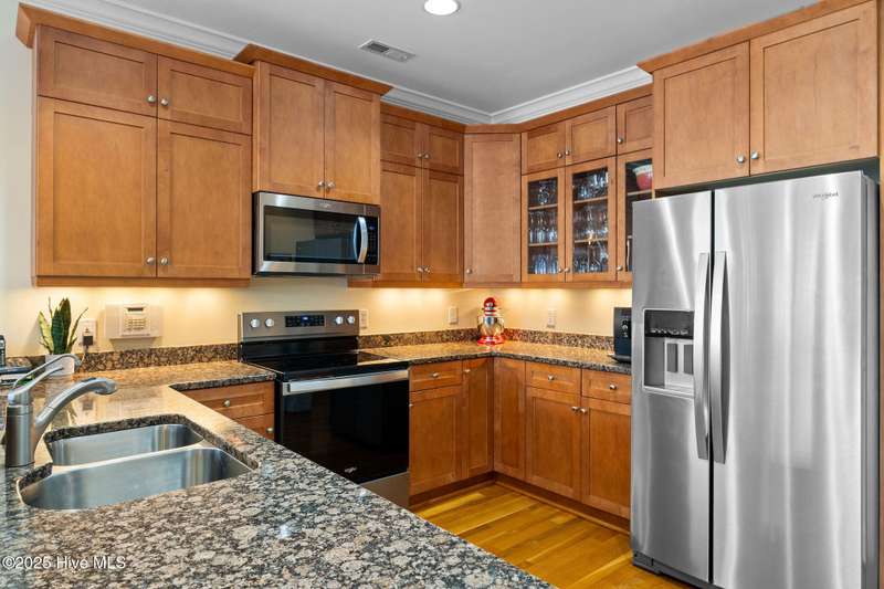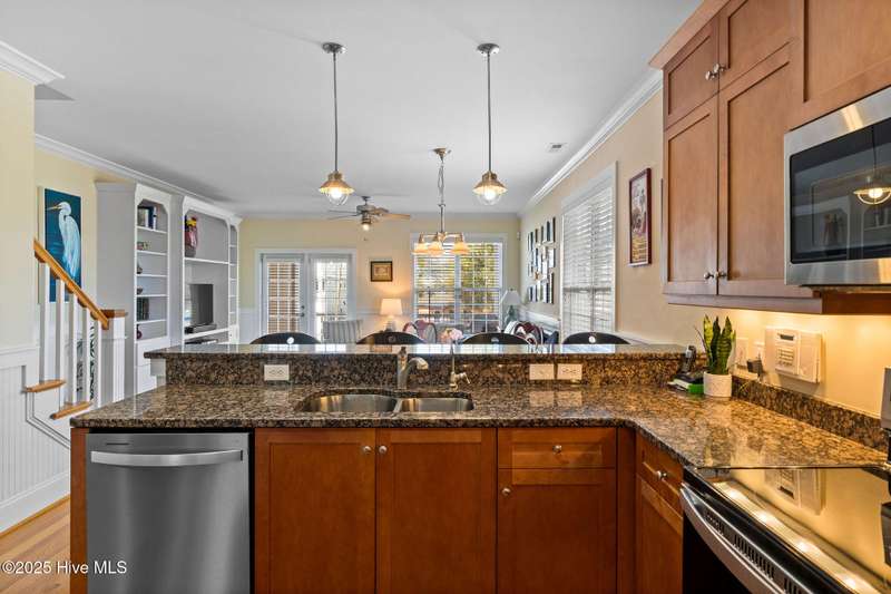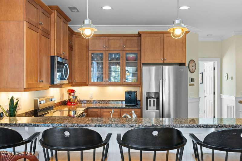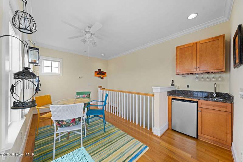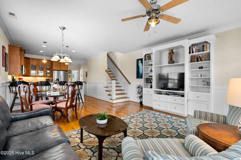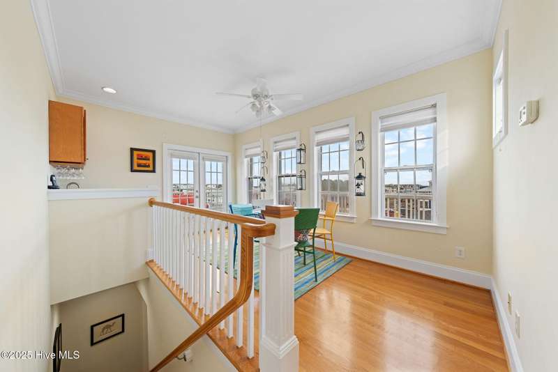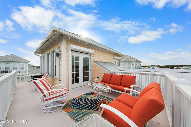 Experience coastal living at its finest in this meticulously maintained 5-bedroom, 4-bathroom duplex-style condo, offering ocean views from multiple porches. Fully furnished and turnkey, this residence even features a private elevator. All appliances are included. The bright, open floor plan is complemented by abundant natural light, and includes custom shades and blinds throughout. Hardwood floors in all living areas, with tile in wet areas, and tile surrounds in all tubs and showers. Two laundry locations add convenience. Upgraded trim features crown molding, chair rail, and custom built-ins in the living room and bedrooms. A reverse osmosis water filter in the kitchen provides purified water for drinking and cooking. Enjoy over 575 square feet of outdoor space, including two large covered decks off the living room and primary bedroom, and a spacious rooftop sun deck with a wet barideal for entertaining while taking in the ocean views. In the summer even watch the weekly fireworks! Hurricane shutters on both the 3rd and 4th floors, including new electronic hurricane shutters on the patio doors of those levels. Alarm system, Outdoor shower. Carport. Not in a flood zone. This condo offers convenience. A short walk or bike ride leads to the beach from this great location, with a new sidewalk leading directly to the beach, complete with a crosswalk and light. Easy access to the Island Greenway Trail for walking or biking across the island. The Island Greenway provides access to the boardwalk, shopping, restaurants, and the state park. This property can be used as a primary residence, second home, or rental investment. Short-term rentals are allowed.