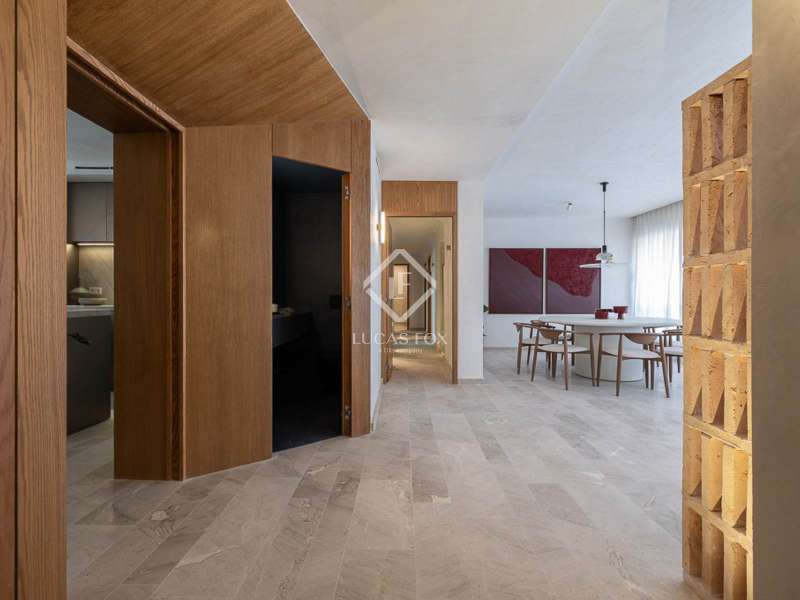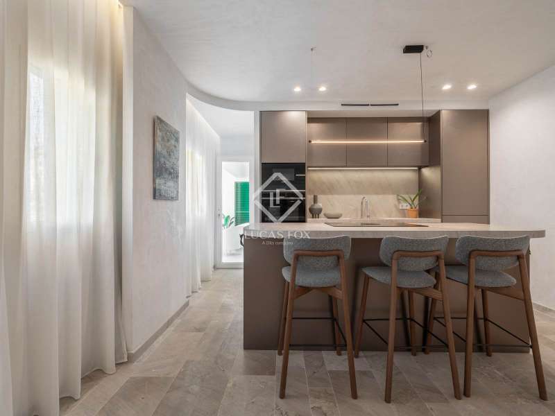 Lucas Fox Mallorca presents this contemporary gem in the heart of Palma. Ideally located just steps from the prestigious Paseo Mallorca, in the heart of Palma, this apartment of over 160 m² of living space will captivate you with its elegance, brightness, and high-end finishes. Completely renovated in a contemporary style, it combines refined design, absolute comfort, and meticulous attention to detail. The interior layout offers four large bedrooms, three full bathrooms, a guest toilet, a high-end kitchen opening onto a TV area, an entrance hall with an exclusive aesthetic, as well as a pleasant terrace overlooking a wooded area. Each room benefits from generous natural light thanks to numerous windows. Housed in a building with timeless charm and two elevators, this property offers a central, peaceful and exclusive living environment. In terms of comfort, the property has an innovative aerothermal air conditioning system, with underfloor heating/cooling, complemented by invisible ducted air conditioning controlled by independent thermostats in each room. A working fireplace in the living room brings a warm and friendly feel to the living area. The apartment has been completely renovated using carefully selected materials such as Zarci natural stone on the floor, MORTEX micromortar in the bathrooms, smooth plaster walls, raw stone sinks, double-glazed interior joinery in natural wood, minimalist windows with the latest generation thermal insulation and aluminum Mallorcan shutters. The Modulnova kitchen is equipped with Siemens appliances, a Bora hob, and a natural stone worktop. The separate laundry room with a Coverlam countertop combines aesthetics and practicality. The lighting ambiance has been carefully designed with lighting from Flos, Vibia, HAY, and local designers like Contain and Studio ISLAS. Furniture selected from Espacio Home (Muundo, Mogg, Expormim, Gloster) is available for purchase. Works by artists such as Carla Galmés and Marisa Munar enhance the spaces. A 12 m² storage room with natural light completes the property, and a parking space is available for rent nearby. This splendid, exceptional apartment, with its unique aesthetics and comfort, is located in one of the most sought-after locations in Palma, allowing you to live in the heart of the city, sheltered from any potential noise pollution.