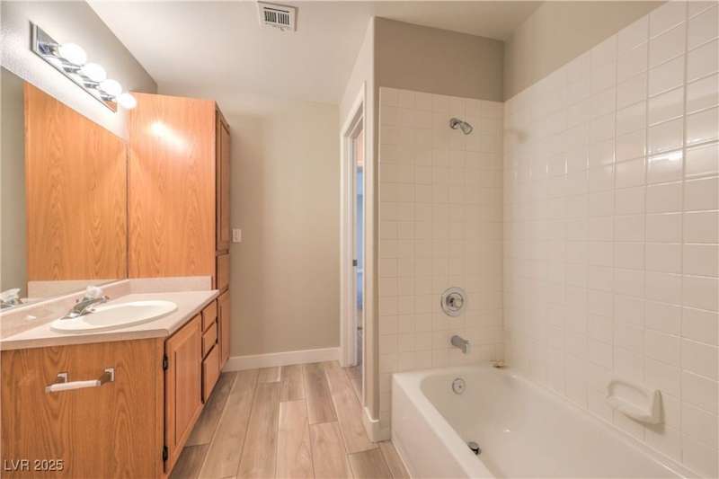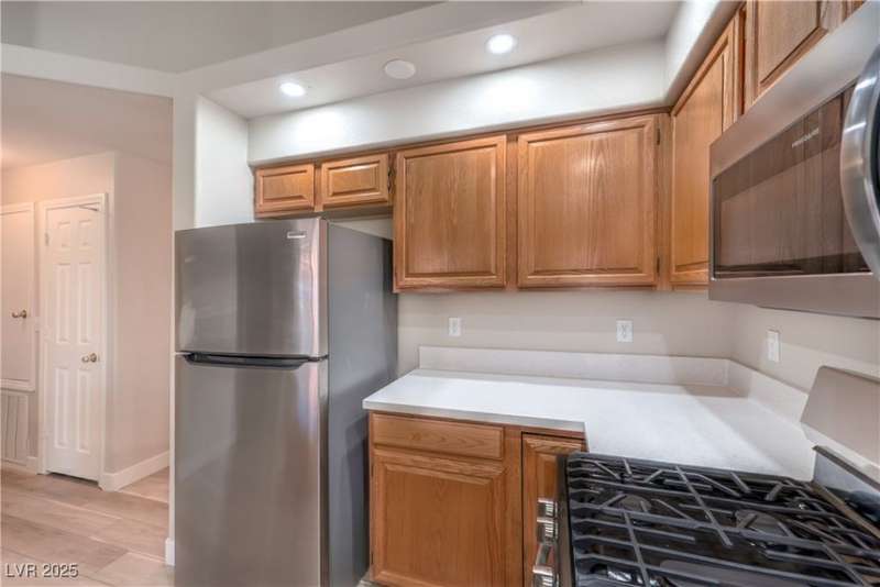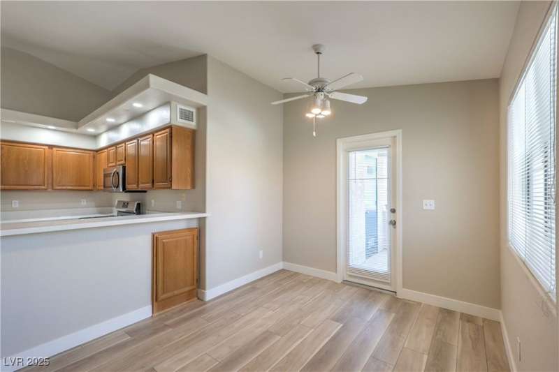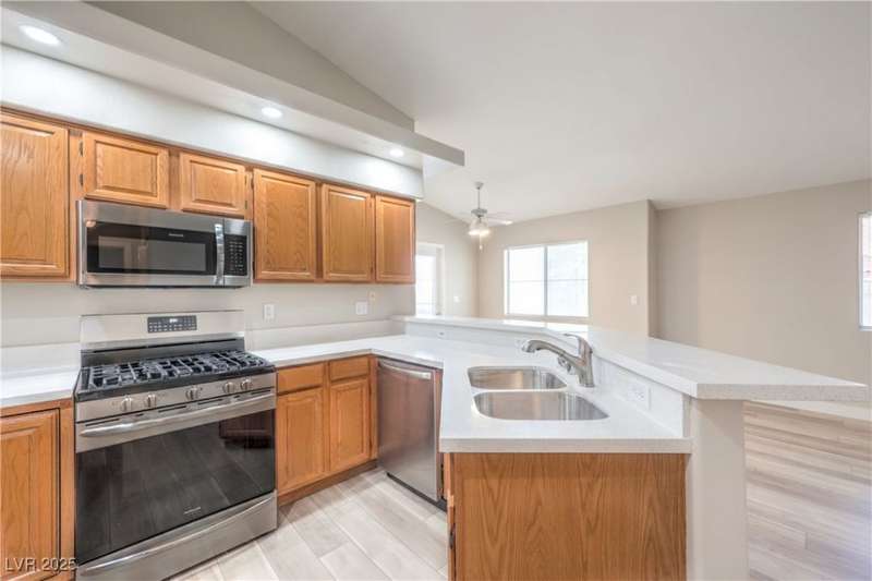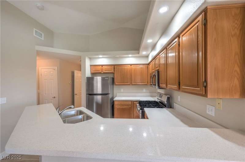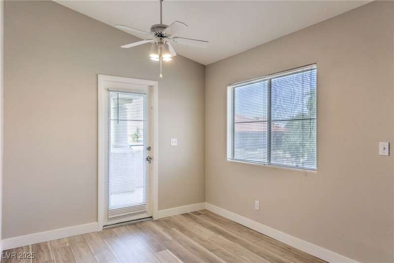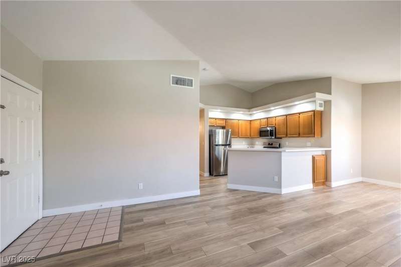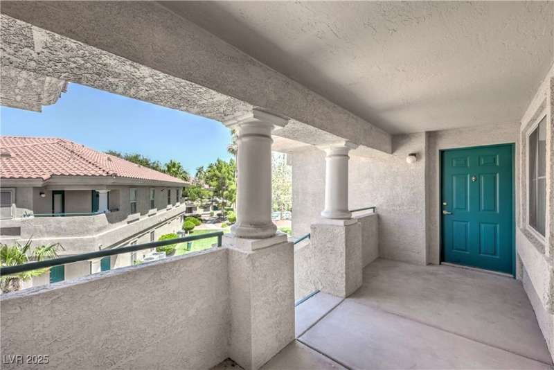 Bank Owned Beauty in Green Valley! Freshly updated with brand new flooring throughout, new paint, and sleek countertops?this spacious corner unit is move-in ready! Soaring cathedral ceilings in the living room create an open, airy feel, complemented by a cozy gas fireplace and stylish ceiling fans throughout. The kitchen shines with updated surfaces and natural light. The oversized primary suite boasts 10-ft ceilings, a massive walk-in closet, dual sinks, and a walk-in shower. The large second bedroom has its own full bath?perfect for guests or roommates. Enjoy your morning coffee on the French-doored balcony overlooking the sparkling community pool. Solar-screened entry, upgraded flooring, and convenient parking near the unit complete the package. Priced to sell?don't miss this Green Valley gem!