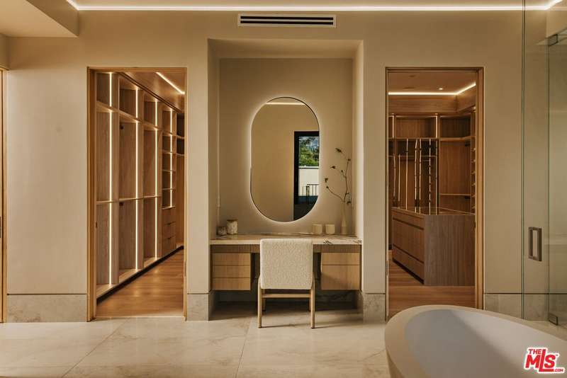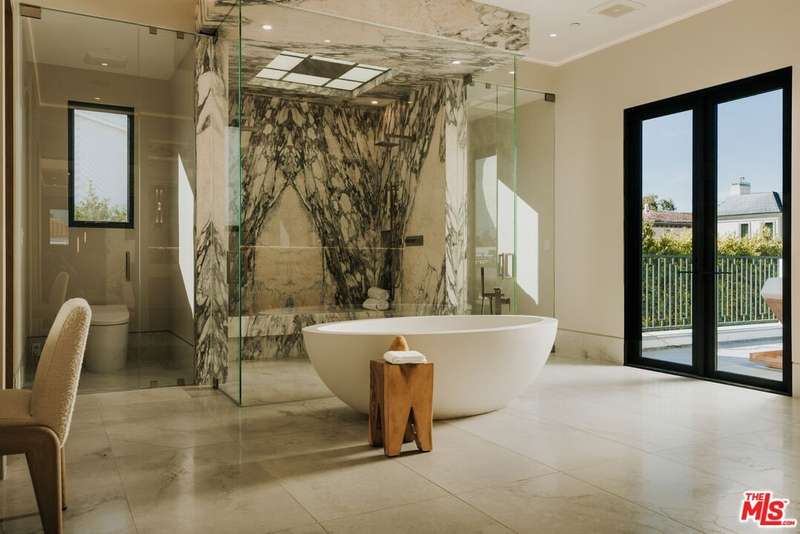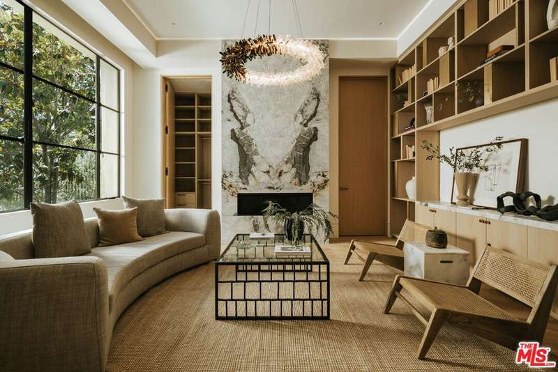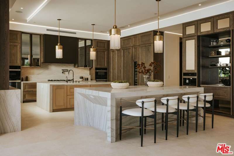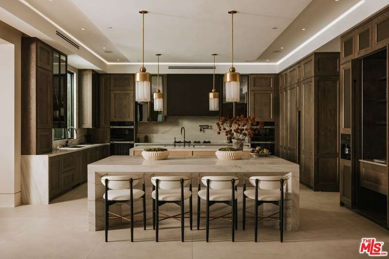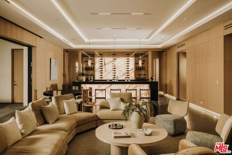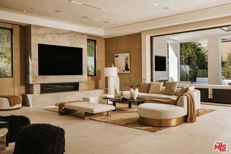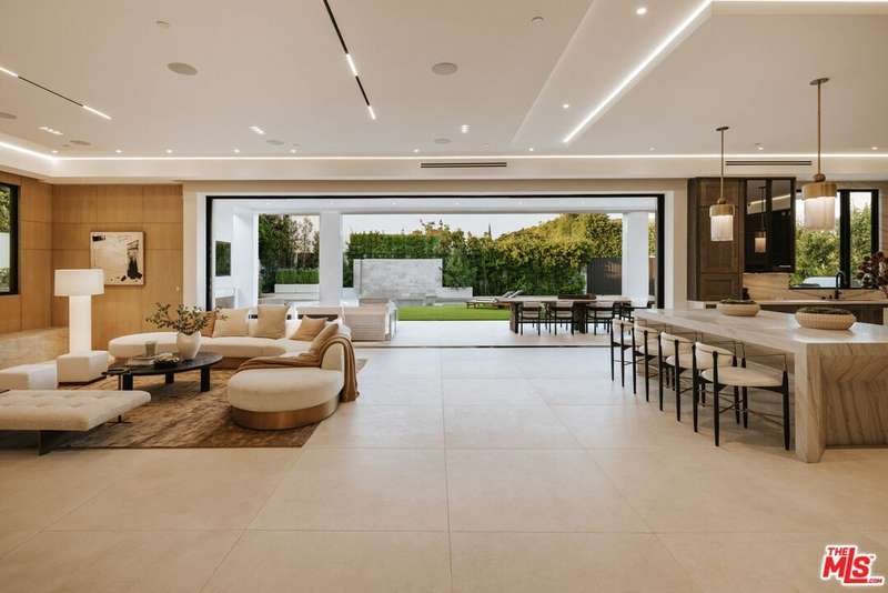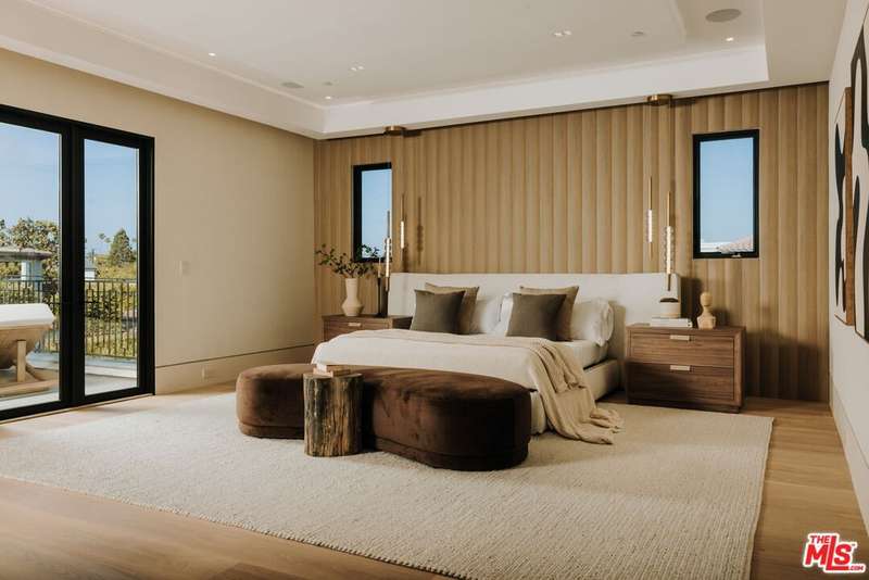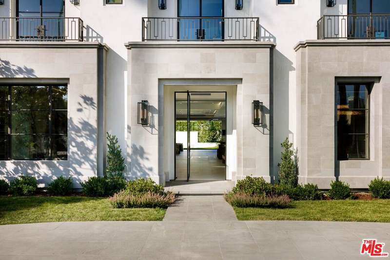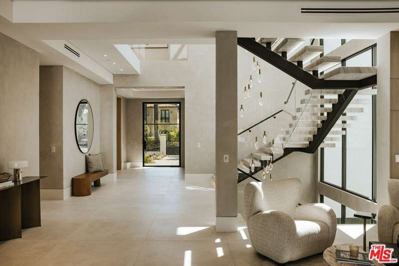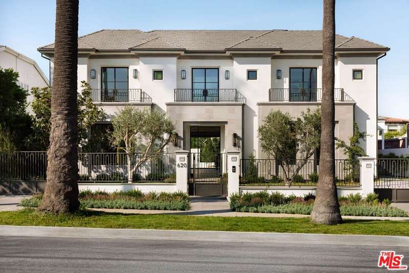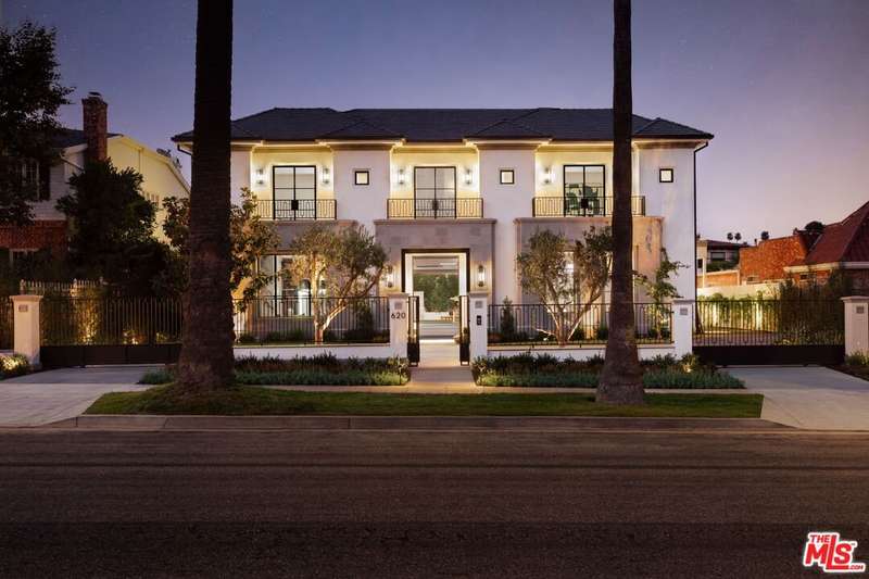 Set behind gates on the prized 600 block of the Beverly Hills Flats, this newly constructed contemporary estate spans an estimated 11,000 square feet, delivering a rare caliber of luxury and craftsmanship. A gated motor court leads to the formal entry, where soaring ceilings and a cascading chandelier frame the central staircase. At the heart of the home is a Spanish-designed gourmet kitchen, combining bespoke finishes with top-tier appliances and effortless indoor-outdoor flow. Expansive living spaces are framed with Euroline steel doors and windows, flooding the interiors with natural light and capturing views of the landscaped grounds. Designed for both large-scale entertaining and everyday ease, the home features a glass-enclosed wine showcase, private theater, wellness suite with sauna, turf basketball court, and a resort-style pool. Upstairs, the primary suite offers a private sanctuary with dual walk-in closets, a balcony, and verdant backyard views. A rare offering on one of Beverly Hills' most coveted streets, 620 Bedford is a bold statement in privacy, design, and modern luxury.