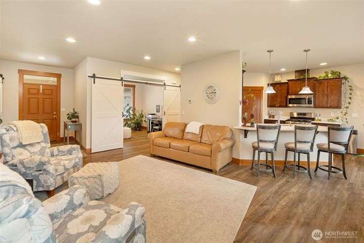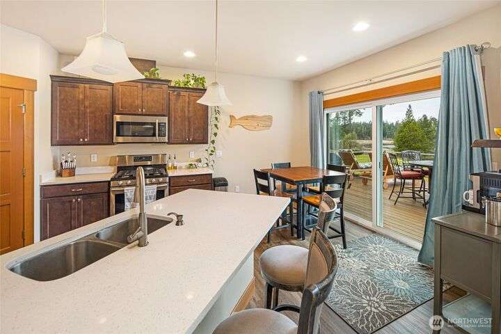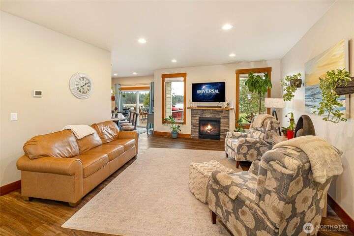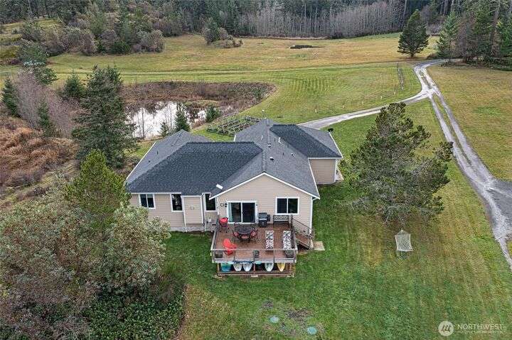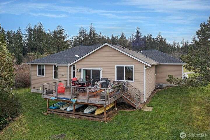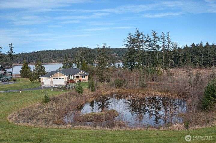 Experience San Juan Island living in this well-maintained 3 bed, 2 bath rambler on 2 acres with pond and Sportsman's Lake access. This 1771 sf home features an open floor plan, gas fireplace, stainless appliances, and natural stone countertops throughout. Spacious primary suite includes a WIC and 5-piece bath with soaking tub and oversized shower. Enjoy the 3-car garage, raised garden beds, fruit trees, and back deck overlooking the lake with abundant wildlife. Sportsman's Lake Park amenities include a community waterfront and dock. Centrally located between Friday Harbor and Roche Harbor, with a compliant vacation rental permit in place - this move-in-ready home is an ideal year-round residence or income-producing retreat.