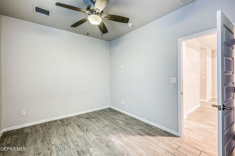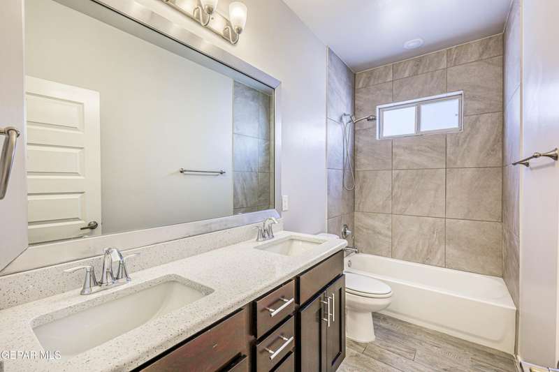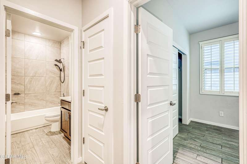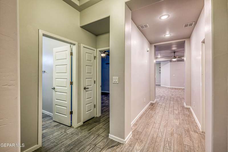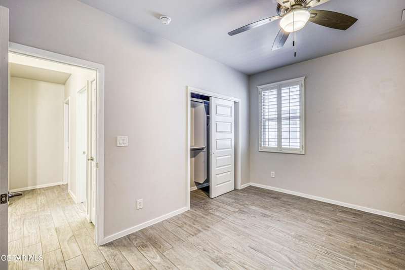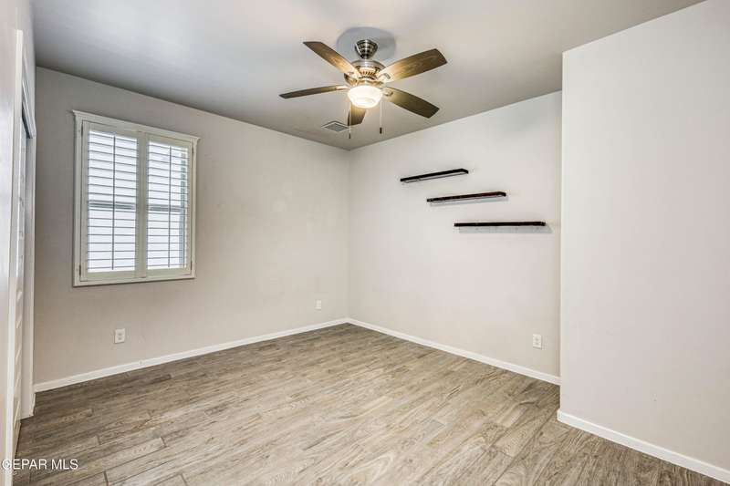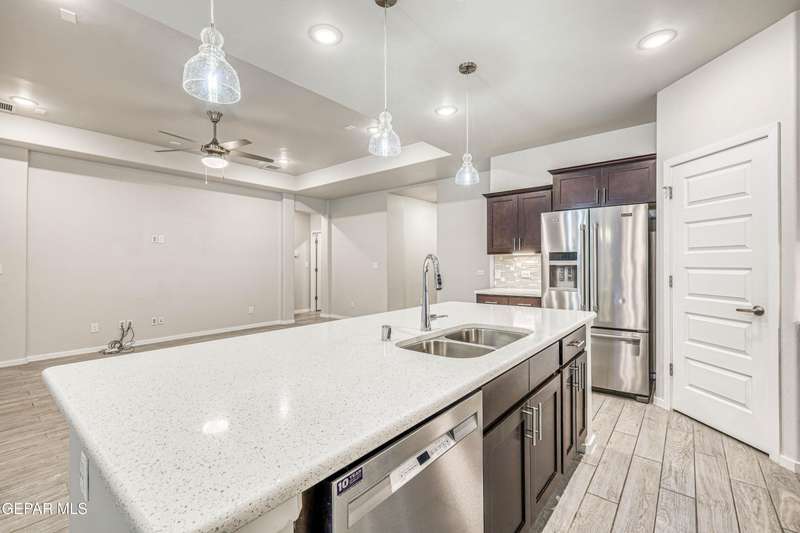 Beautifully maintained 4-bedroom, 3-bath home in the desirable Hillside at Mission Ridge subdivision. This upgraded Hakes Brothers Canyon floor plan offers approximately 2,045 sq. ft. of open, modern living space. Enjoy tile flooring throughout, quartz countertops in the kitchen and bathrooms, under-cabinet lighting, and pendant lighting in the kitchen. The primary suite features an upgraded full-glass shower door, double sinks, and a spacious walk-in closet. Every room includes ceiling fans, tinted windows, and ethernet ports. Additional highlights: refrigerated air, pre-wiring in the living room and patio, keyless front entry, and security cameras. Stainless-steel appliances-refrigerator, built-in microwave, oven, and dishwasher-convey with the sale. Pride of ownership shines throughout, and solar panels will be paid off at closing, providing lasting energy efficiency and savings!