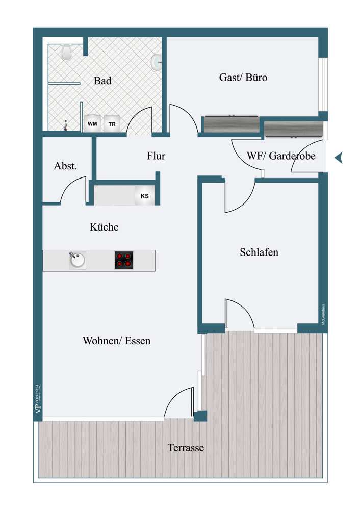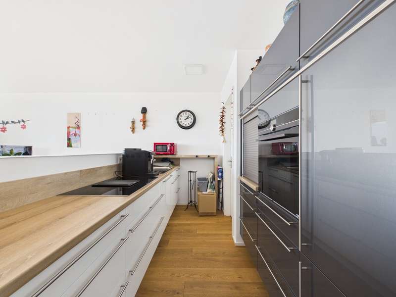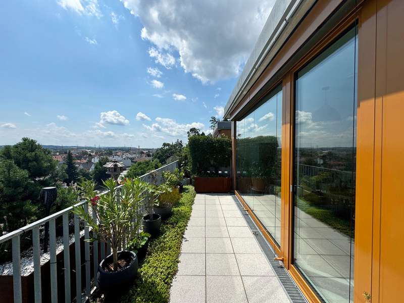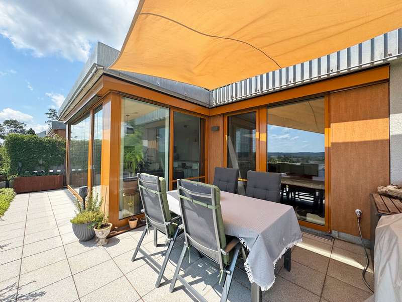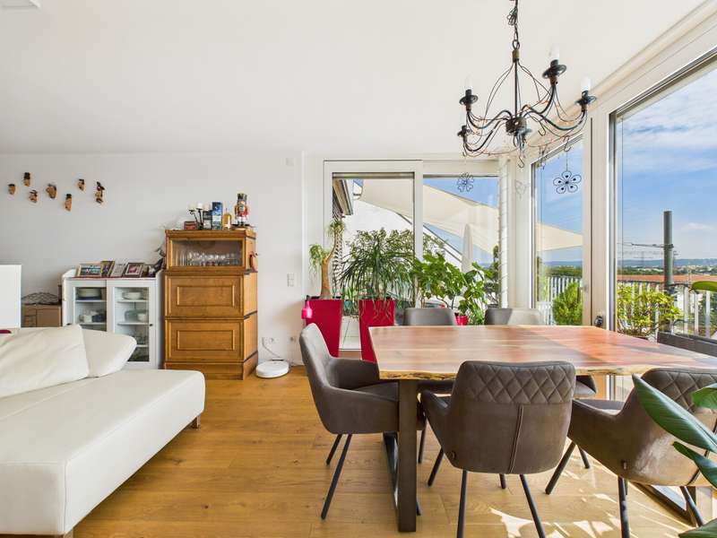 This beautifully designed 90 m² 3-room apartment is located in a modern terraced building in Altdorf and offers a breathtaking view of Landshut and the picturesque Isar valley. Here you will not only enjoy a first-class location, but also the highest level of living comfort and a stylish ambience. The apartment impresses with its contemporary and high-quality furnishings, which leave nothing to be desired. The generous window fronts flood the rooms with natural light and create a bright, friendly atmosphere that invites you to feel at home. The modern, open fitted kitchen is a true paradise for amateur chefs and invites you to enjoy convivial cooking evenings. A special highlight of this apartment is the 26 m² roof terrace. Here you can unwind, enjoy the magnificent view and spend relaxing hours in the open air. Whether over a leisurely breakfast or a glass of wine in the evening - this terrace will quickly become your favorite spot. Additional storage space is provided by your own cellar room and a practical storage room in the apartment. Your vehicles are safely stored in the outdoor parking spaces. The external blinds ensure increased living comfort. The 3-room apartment not only impresses with its well thought-out room layout, but also with its high-quality and contemporary furnishings, which offer you maximum living comfort. Here you will find your new home, which will give you pleasure day after day. Don't miss out on this unique opportunity and arrange a viewing today! Experience the special atmosphere and charm of this dream apartment for yourself.
