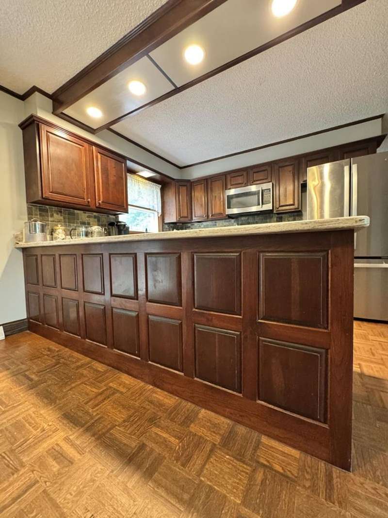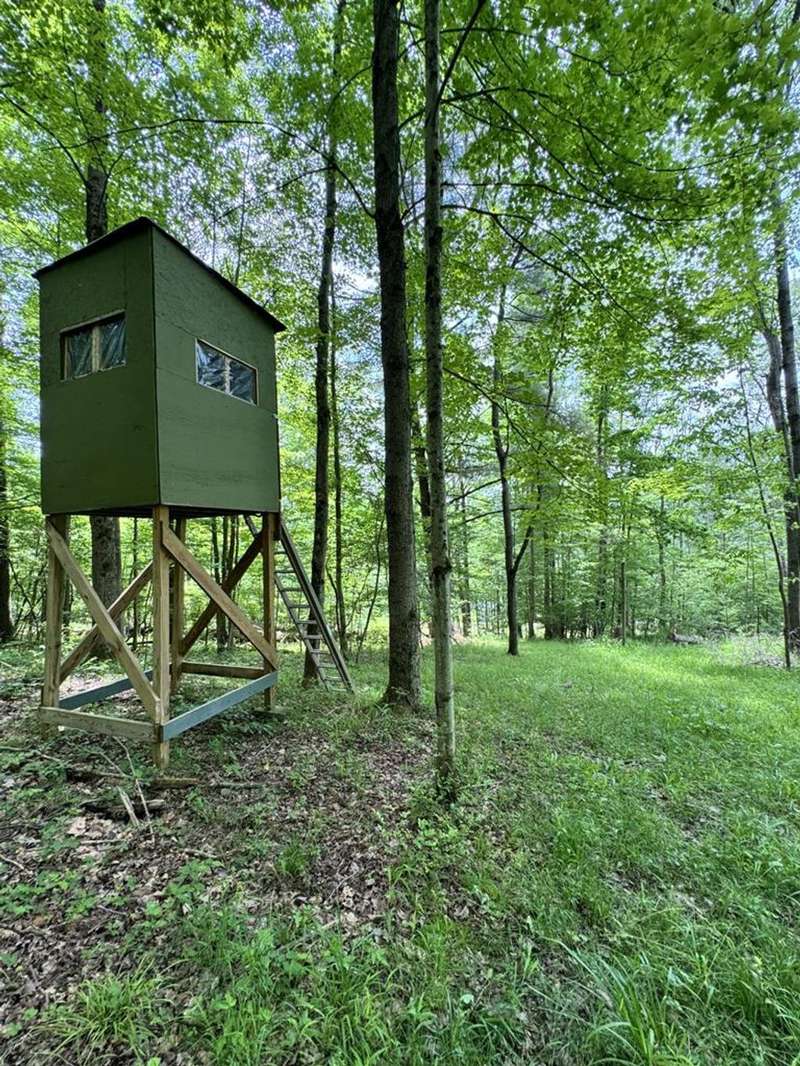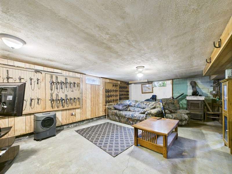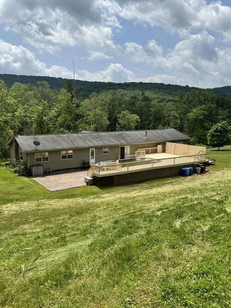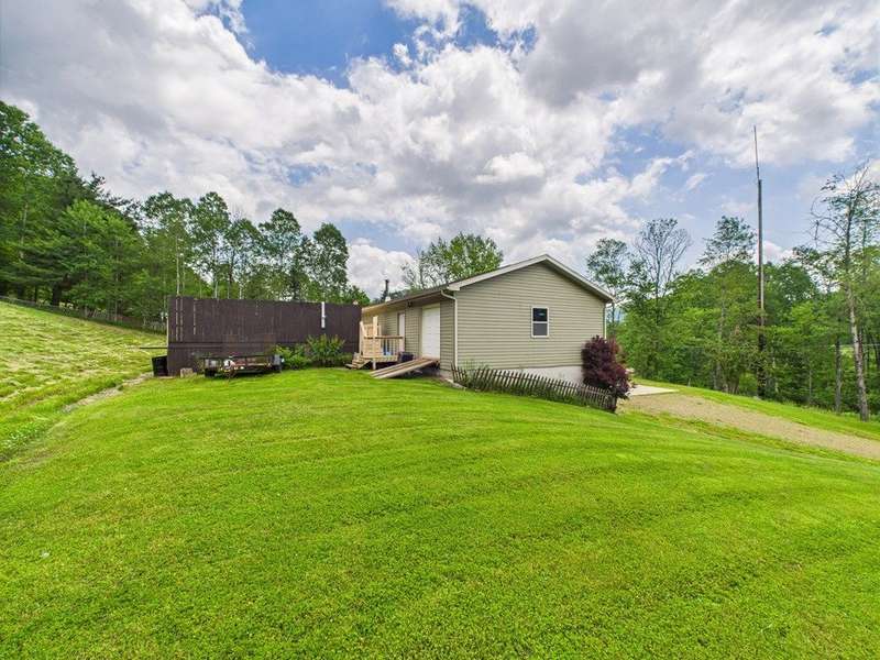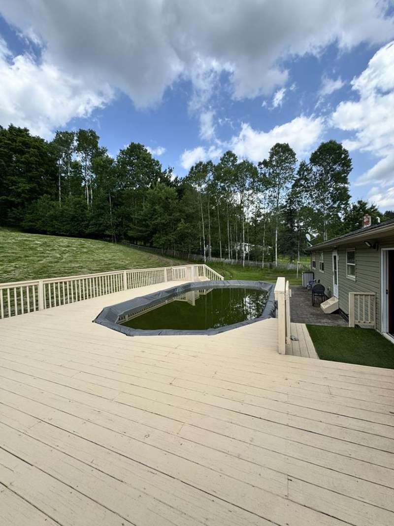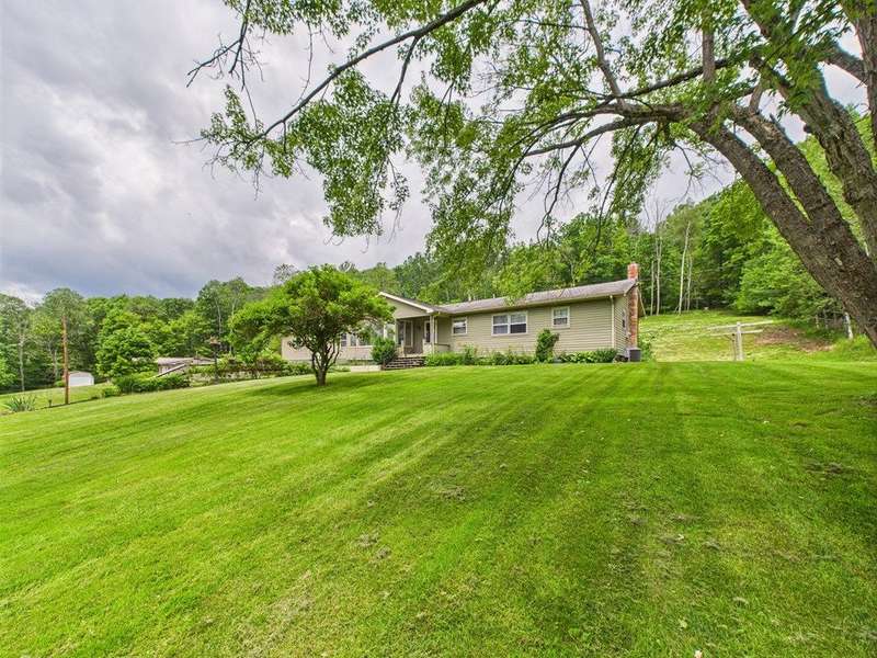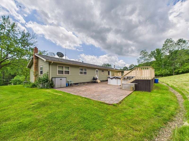 This property features a spacious layout with a partially finished basement, ideal for customization and additional living space. An attached three-car garage provides ample parking and storage. Above the garage from the rear of the home is a large room and then an added storage room with a ramp making easy access to drive hobby vehicles in. Step outside through the sliding glass door from the dining room to discover an above-ground pool surrounded by a large deck and stamped decorative patio, perfect for entertaining or simply relaxing and enjoying the picturesque surroundings. In the rear of the yard is a level area leading on into the wooded area where there is a permanent tree stand. The home has three bedrooms and two full bathrooms, including the primary suite. Corian kitchen counter tops with solid wood cherry cabinets, stainless steel cabinets included. Exterior french drainage surrounding the home. AC home. Spring water with ultraviolet lighting and septic system.