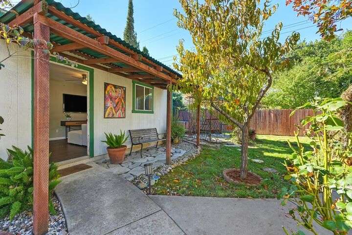 Welcome to this thoughtfully updated home in the heart of Tahoe Park, blending modern comfort with true California backyard living. Step inside to a bright, open living space remodeled in 2021, featuring a beautifully refreshed kitchen with quartz countertops, shaker-style cabinets, subway tile backsplash, gas range, and a large quartzite island perfect for gatherings, from casual game nights to formal gatherings. Major updates include a new 30-year roof and gutters (2019), redwood fencing, and an energy-efficient laundry setup. The detached, fully finished studio with A/C and power offers an ideal home office, creative retreat or the perfect spot for movie night! Step outside to your private outdoor oasis with a patio and hot tub under the stars. Enjoy fresh lemons, limes, apples, and peaches from your own trees, plus a thriving vegetable garden that captures the essence of California living. Two majestic redwoods provide shade and habitat for neighborhood hawks and owls. Through the back gate, Tahoe Park awaits with food truck nights, movie events, and playground fun, all minutes to local favorites like Sac City Brews, Bacon & Butter, Sewcial, Tokyo Table, Mezcal and Kansai. A perfect harmony of style, comfort, and connection awaits in this Tahoe Park treasure.
