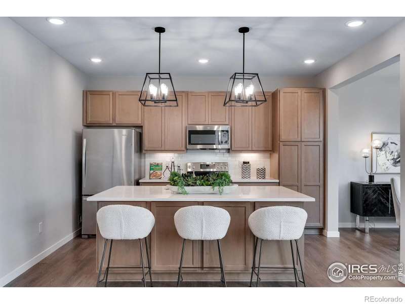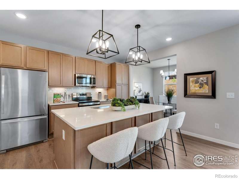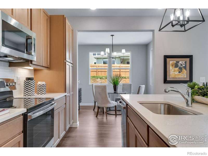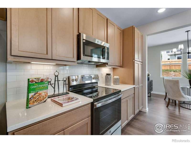 Built in 2023 with an open concept in mind, this charming 3 bedroom/3 bath home is located conveniently close to shopping, school, pool, tennis, parks and walking trails in popular Rock Creek. Kitchen shines with quartz counters, smooth top stove and stainless steel appliances. Separate dining room. Great room boasts electric fireplace. Luxury vinyl floor throughout the main level. Unique study with barn door. 5 piece primary bathroom with freestanding soaking tub.8' doors on main. Solar installed this year and will be paid off prior to closing. EV charger. Radon mitigation installed, sump pit and pump, tankless hot water heater. Mountain views from front porch.