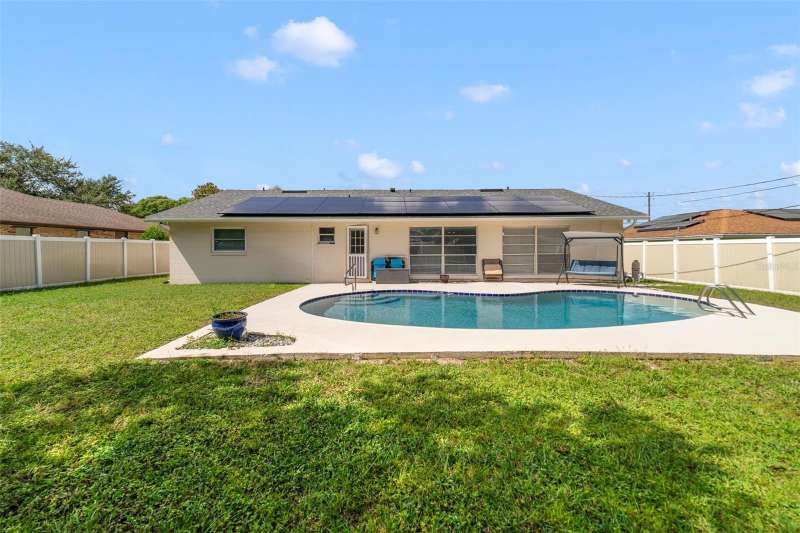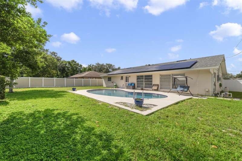 **Seller may consider buyer concessions if made in an offer**Welcome to this BEAUTIFULLY REFRESHED 3-bedroom, 2-bath POOL HOME in Deltona Lakes, offering over 1,700 SQUARE FEET of single-story living on an OVERSIZED LOT. With a long list of recent updates and a private pool retreat, this home is MOVE-IN READY and built to impress. In 2025, both bathrooms were fully updated, adding modern style and functionality. The entire interior was PAINTED in 2024, and the Kitchen and Baths were elevated with QUARTZ COUNTERTOPS, new sinks, and a designer backsplash. Also in 2024, the in-ground pool was RESURFACED and RESEALED, complete with new tile, drain, and skimmer, while the oversized yard was secured with a brand-new PVC FENCE. Other major updates include a NEW ROOF (2023), NEW AC and compressor (2022), and LUXURY VINYL PLANK flooring throughout (2022). ENERGY-EFFICIENT SOLAR PANELS keep monthly ELECTRIC BILLS LOW, while a huge 2-car garage offers abundant storage and convenience. Inside, the floor plan flows easily with a bright, open design. The Primary Suite offers TRIPLE CLOSETS and an EN SUITE BATH, while one of the additional bedrooms also features EN SUITE ACCESS to the second full bath—a fantastic layout for guests, family, or even a roommate. The third bedroom adds further flexibility for a home office or hobby space. Step outside to your own BACKYARD OASIS with a sparkling PRIVATE POOL surrounded by plenty of space for entertaining, relaxing, or gardening—all within the privacy of a FULLY FENCED YARD. With NO HOA, you’ll enjoy the flexibility and freedom to personalize your space. Ideally located near Dewey Boster Sports Complex and Timber Ridge Park, with QUICK ACCESS to I-4, US-17 and SR-415 you’re within easy reach of shopping, dining, schools, and Central Florida’s best destinations—from DAYTONA and NEW SMYRNA BEACHES to DOWNTOWN ORLANDO. With its FRESH UPDATES, private pool, and prime location, this Deltona Lakes home is ready to welcome its next owner. Schedule your showing today!
