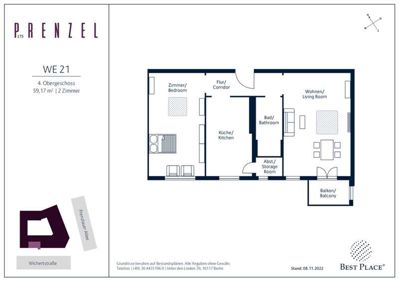 Living in the Helmholtzkiez! The classic Wilhelminian style corner house Prenzel175 was built in 1908 as an imposing 4-story building, consisting of front house and side wing. Bay windows, balconies and a staircase with beautiful historic details give the residential and commercial building a special charm. Everything breathes the epoch around 1900! The total of 48 residential units of the "Prenzel175" have 1 to 6 rooms as well as 7 commercial spaces on the first floor with generous living spaces of approx. 43 to 162 m². Almost all residential units are equipped with a balcony or terrace. Particularly nice: The southeast orientation ensures bright, light-flooded rooms. Whether for singles, couples or families - perfect for all who want to live quietly and at the same time close to the center in a well-situated family district.