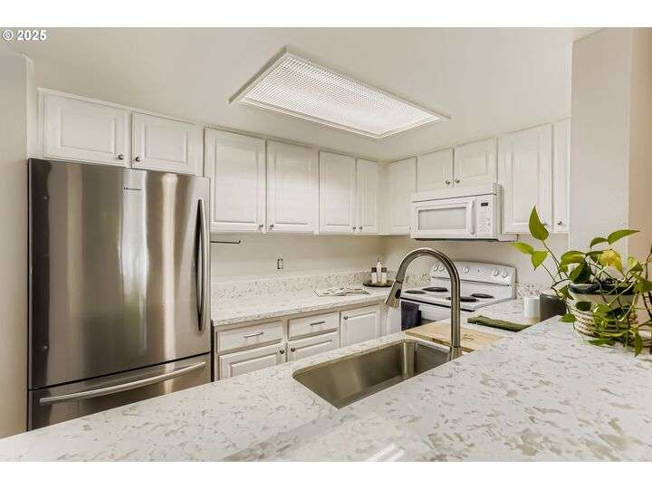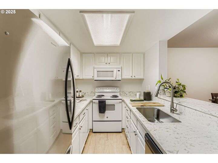 Discover comfort and convenience in this charming 2-bedroom, 2-bath condo ideally located near hospitals, shopping, and restaurants. The kitchen features brand-new quartz countertops and generous cabinet space, while the inviting living room offers a cozy fireplace and sliding door that opens to a private patio with an additional storage unit. The spacious primary suite includes its own bathroom. Nestled against Mount Talbert Nature Park, you’ll enjoy beautiful natural surroundings and hiking trails. The HOA provides water, sewer, and trash services, plus access to a weight room, outdoor pool, and meeting room—all designed to make life easier and more enjoyable.