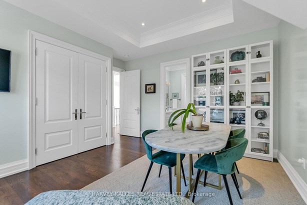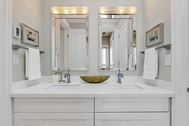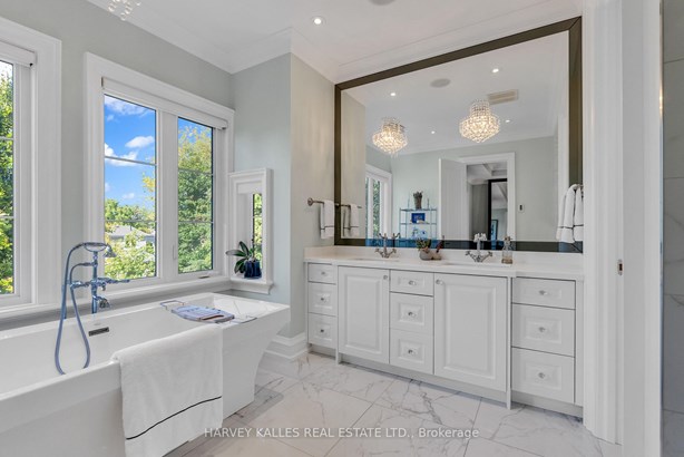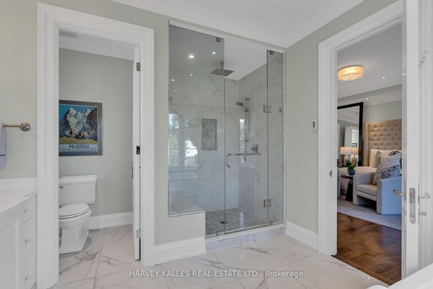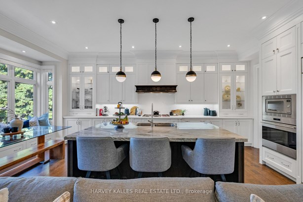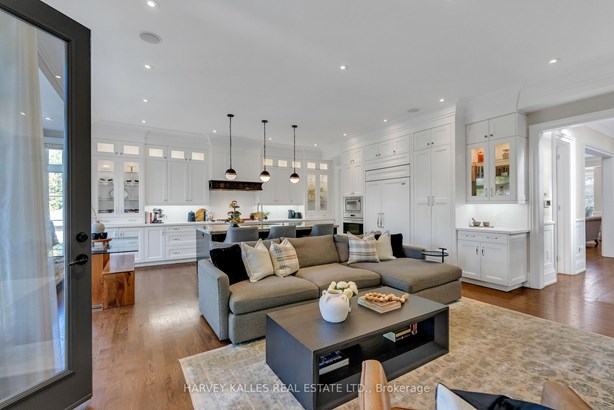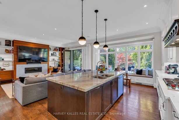 Stunning custom-built home showcasing featuring hardwood and marble floors, crown moulding, pot lights, and paneled walls throughout. Designer walnut finishes highlight the foyer, living room, and custom family room shelving. The spacious primary retreat offers a walk-in closet, skylit ceiling, and a luxurious 6-pc ensuite with heated floors. A gourmet kitchen is complete with quality cabinetry, two stainless steel sinks, high-end stainless steel appliances, granite and quartz countertops, and a stylish backsplash. The fully fenced backyard boasts a stone patio, lush landscaping, and a custom gazebo, heated floors in all bathrooms, the foyer, and basement.