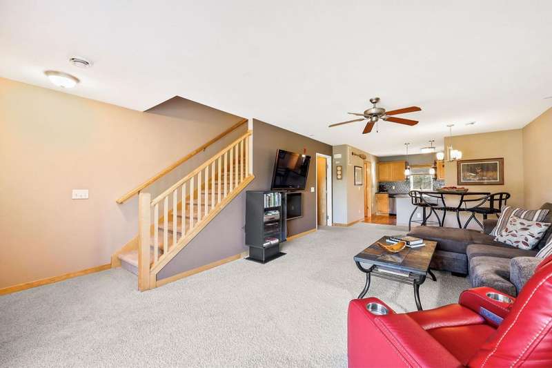 CITY LIGHTS AND QUIET NIGHTS! This inviting 2 bed, 2.5 bath townhouse-style condo features a contemporary floor plan designed for modern living. The bright living room flows seamlessly into the dining space, while kitchen shines with maple cabinets & trim, stainless steel appliances, and a breakfast bar. Upstairs includes two bedrooms, each with a full bath, and stunning Capitol views. In-unit laundry and a main-level bath add ease of convenience. A private balcony overlooking green space is perfect for a morning coffee. A private 2-car tandem garage provides extra storage. Located near Madison Downtown, UW-Campus, the Beltline, Lake Monona, bike paths, shops, restaurants, hospitals, and public transit, this home offers an effortlessly convenient lifestyle.