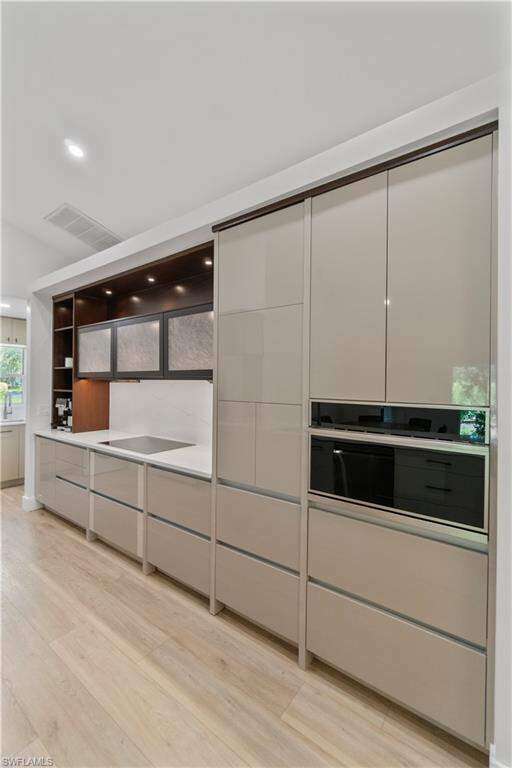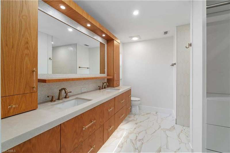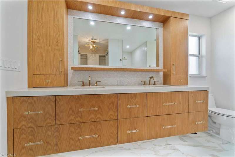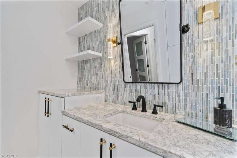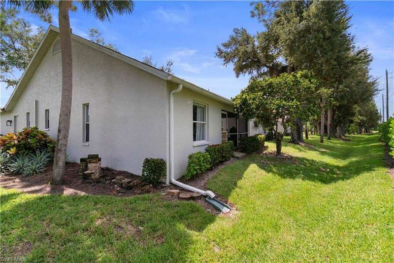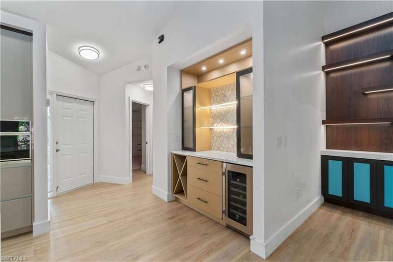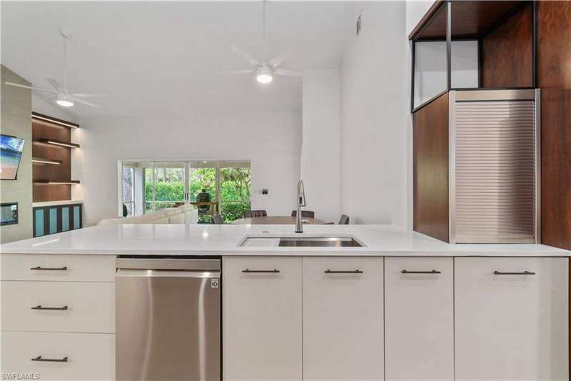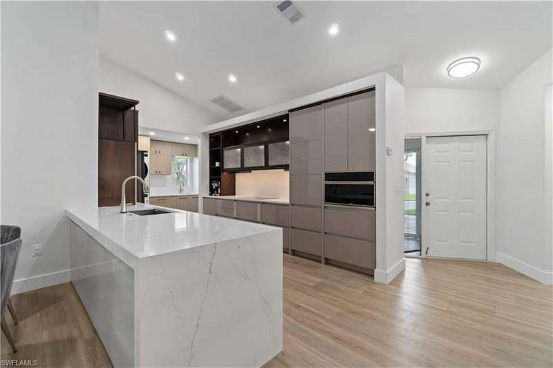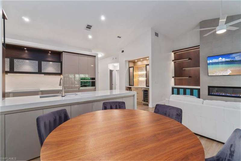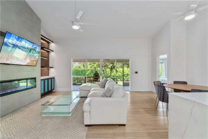 Welcome to a true modern masterpiece, where exquisite charm meets unparalleled craftsmanship. This fully high-end renovated residence is not just a home-it's a 360 piece of art. Every detail has been curated with the precision and elegance you'd expect to see in the pages of a world-class design magazine. Step inside and be greeted by tall ceilings and abundant natural light that amplify the home's open and airy feel. Throughout, luxury vinyl floors bring warmth and continuity, while the porcelain-tiled master bath exudes spa-like sophistication. The home's design showcases a thoughtful blend of the finest materials, including Silestone quartz kitchen counters, quartzite in the master bath, and Cambria quartz in the guest bath. The heart of the home shines with a chef-inspired kitchen rivaling those found in multi-million-dollar estates, complete with sleek finishes, timeless design, and high-end appliances. A striking statement fireplace with lighted floating shelves anchors the living space, while a custom bar area promises to impress guests and elevate your entertaining. The guest bedroom features custom built-ins, offering both elegance and functionality. Enjoy exceptional privacy with an open lot on the right side of the home, with no neighbors-an uncommon bonus in this sought-after community. A large side yard expands your living outdoors, perfect for gatherings under the Florida sunshine. Fairway Dunes is a peaceful, centrally located gem with a true sense of neighborhood charm. Residents enjoy an active clubhouse, GEO-thermal heated pool with baths, tennis and pickleball courts, a barbecue area, and scenic walking paths around the lake-all with low HOA fees. The home sits in an X flood zone, with no current assessments. Just minutes from Coconut Point, the Promenade, downtown Bonita Springs, RSW Airport, Interstate 75, FGCU, golf courses, parks, and boat ramps-not to mention the white sand beaches of Southwest Florida-you'll find the perfect balance of relaxation and everyday convenience. This isn't simply a place to live-it's a place to be. Touch every moment at this one-of-a-kind Fairway Dunes retreat.
