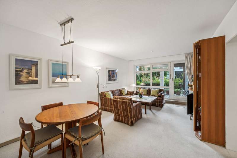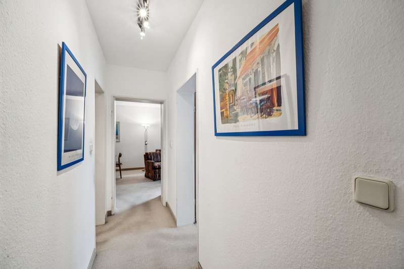 Here we present a well-kept 3-room apartment with a living space of approx. 67 m², located on the mezzanine floor of an apartment building built in 1983. The apartment is ideal for couples, small families or individuals who need space. The well thought-out floor plan ensures optimal use of space. All rooms in the apartment can be reached from the central hallway. The spacious living room impresses with its advantageous size. The remaining two rooms offer flexible usage options, whether as a bedroom, children's room or work area. The bathroom is equipped with a shower and has contemporary sanitary ware. The apartment has a separate guest WC. Another special feature is the terrace off the living room and bedroom with private access to the communal garden and a further balcony off the children's room. It should also be emphasized that this property is equipped with underfloor heating. The kitchen has ample storage space and work surfaces. Thanks to the balcony doors in all living rooms and bedrooms, the apartment is bright and inviting. The fixtures and fittings are of a solid standard. The living rooms are fitted with easy-care flooring. The apartment has its own cellar room, which offers additional storage space. Bicycle enthusiasts benefit from a communal bicycle cellar in the building, which provides safe and convenient storage. A garage parking space is available for your car, which is included in the purchase price and saves you having to search for a parking space. The building and communal facilities are regularly maintained, which has a positive effect on the overall condition of the property. Access to the apartment is via a well-kept stairwell with a small number of residential units per floor, which promotes pleasant interaction. This 3-room apartment combines practical furnishings with a comfortable living situation. If you value a functional room layout, well-kept communal facilities and a good location, you should take a closer look at this property. Feel free to arrange an individual viewing appointment - we look forward to hearing from you.