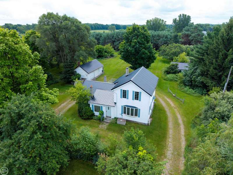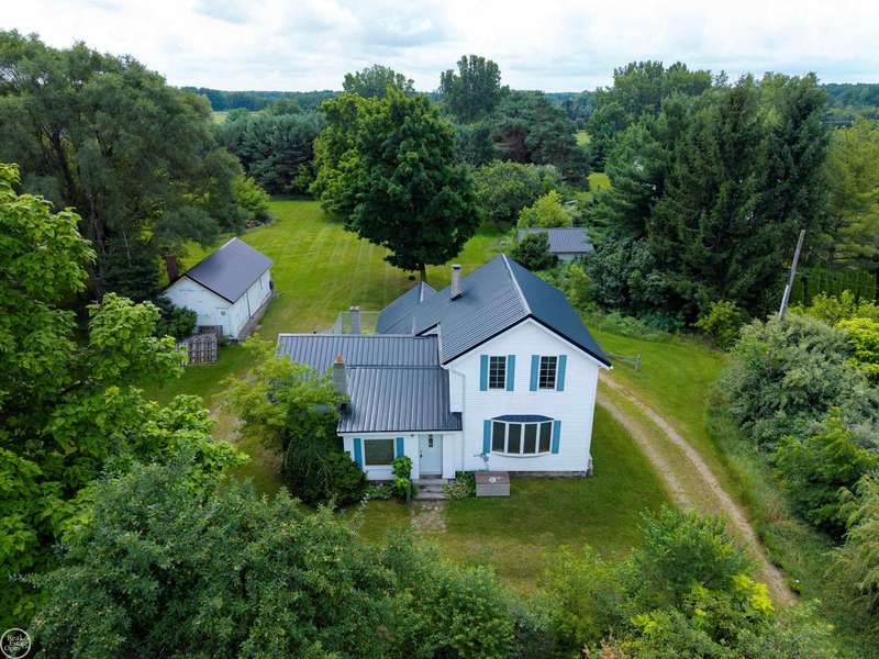 Nestled on 4 acres of picturesque, partially wooded land, this property offers apple trees, pear trees, and raspberry bushes--your own private escape from the busyness of everyday life, yet roughly 15 minutes to Lapeer and 25 minutes to Imlay City. Store ATVs, cars, or entertain from your walk-out barn; start a hobby farm, or relax by a cozy bonfire under the stars. There's fenced yard right off the house is perfect for your pups. The centennial home boasts a new metal roof (2025), fresh trim, paint, and interior doors, granite countertops, original hardwood flooring, recently treated septic, and a foyer accented with exposed brick. Inside, you'll find a spacious living room, dining area, and plenty of bedrooms to suit your needs--not to mention a classic Michigan basement with ample storage. With a little elbow grease and your personal touch, this property is ready to shine. Come see its potential and make it yours today! BATVAI