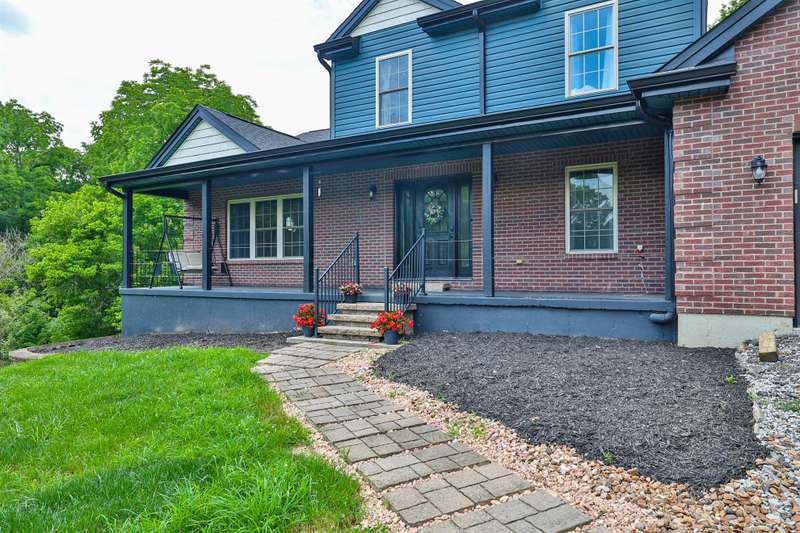 BEAUTIFUL 4-bedroom home designed for everyday living & memorable gatherings. The sought-after first-floor primary suite features a spa-like tiled shower, while a private study with French doors adds flexibility. A rare 3-car tandem garage and recent updates to siding, roof, gutters, & whole-house water filtration offer peace of mind. Inside, hardwood floors, rich woodwork, & soaring cathedral ceilings create warmth & character in this private setting. The kitchen shines w custom hickory cabinetry, a counter bar, & open flow ideal for entertaining. The oversized laundry/mudroom adds convenience, & the expansive walk-out basement w full bath rough-in is ready for your custom finishes. Private, serene, and move-in ready!