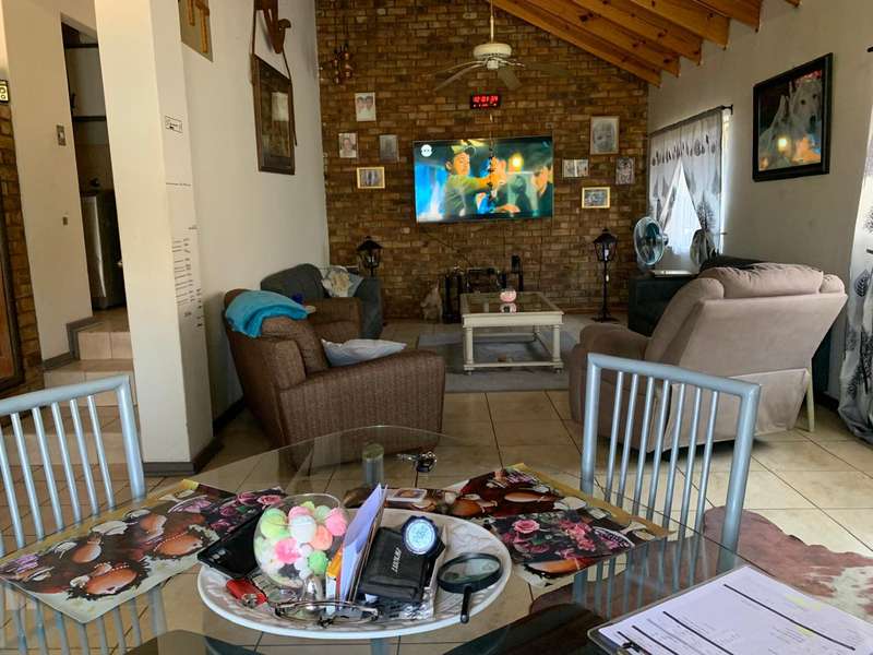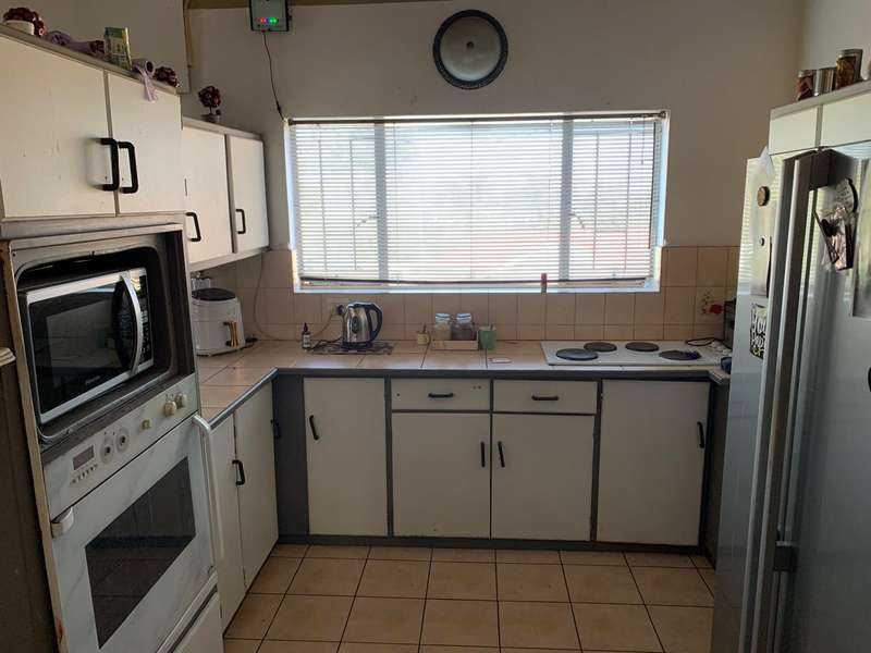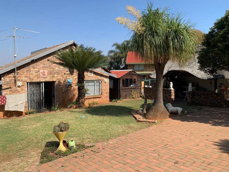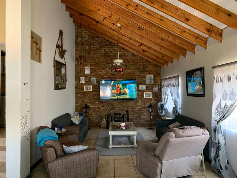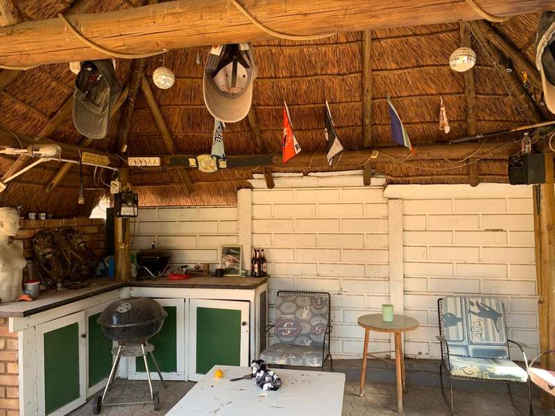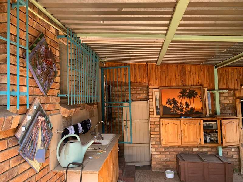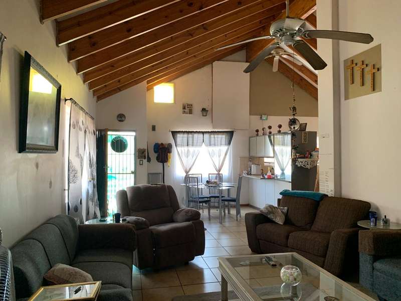 This well-kept 2-bedroom home offers comfort, character, and convenience in a secure setting. The property features 1 full bathroom and a separate toilet, perfect for practical living. The well-equipped kitchen is complemented by a separate laundry room, ensuring daily tasks are handled with ease. The lounge is enhanced by striking high timber beam ceilings, creating a warm and spacious atmosphere. The lounge area, dining room and kitchen is open plan. A thatched roof lapa offers a great space for outdoor entertaining or relaxing. Additional features include 3 garages and a shadeport, ideal for extra parking or storage. There is also an outside toilet for domestic use, a Wendy house for extra storage, and a low-maintenance garden that keeps upkeep simple. The property is fully walled with prefabricated walls on the sides and palisade fencing in front, offering both privacy and street appeal. For peace of mind, security includes CCTV, security gates, and burglar bars. A solid and secure property with plenty of extras. Book your viewing today.