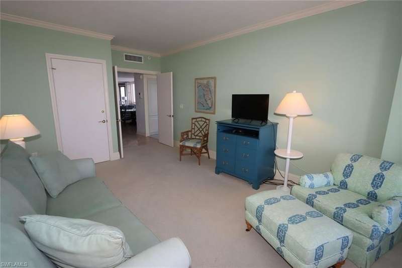 Marquesa...Enjoy this elegant building located in the private gated community of Bay Colony. This 12th floor, 3 bedroom, den, 3 bath residence overlooks the beauty of the Pelican Bay preserve with long views of the beach and coastline west, north and south! This quiet location offers a full range of amenities, including fitness, a large pool, spa and poolside grill. As a guest in the Marquesa, you have access to the tennis center, and also private Beach Club at Bay Colony, offering fine and casual dining, as well as a beachside pool with lounge service and light fare. The den offers a queen pull- out couch, flat screen TV, and a full bath. A beautiful kitchen with Corian counters, quality appliances, and a sitting area with dining for 6. Throughout this property you will find marble flooring, attractive furnishings for comfort and entertaining. Enjoy a beautiful sunset on the screened lanai, which is fully furnished for relaxing and dining; an east, morning view is perfect for your morning coffee. So close to the shops, restaurants and galleries at Waterside shops, Venetian Village; a short drive to 5th Ave., and Third Street.
