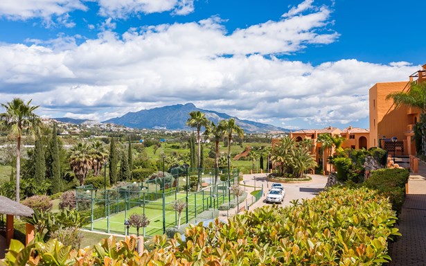 This stylish, southwest-facing garden apartment offers the perfect blend of comfort, design, and location—set within the secure and well-kept community of Gazules del Sol, just a short walk from Atalaya International School and close to Benahavís.All on one level, the apartment features a bright and open living-dining area that leads to a covered terrace and a spacious 70 m² private garden—ideal for relaxing, entertaining, or enjoying sunny afternoons. The modern open-plan kitchen includes a convenient laundry and pantry area.There are three bedrooms in total, including a master with an en-suite bathroom, and two additional bedrooms that share a well-appointed bathroom. Warm oak herringbone flooring adds character throughout, while underfloor heating in the bathrooms, central A/C, and a Sonos sound system in the living room bring a touch of luxury.A private parking space and a storage room are included in the underground garage.Gazules del Sol offers fantastic amenities: three
