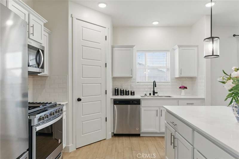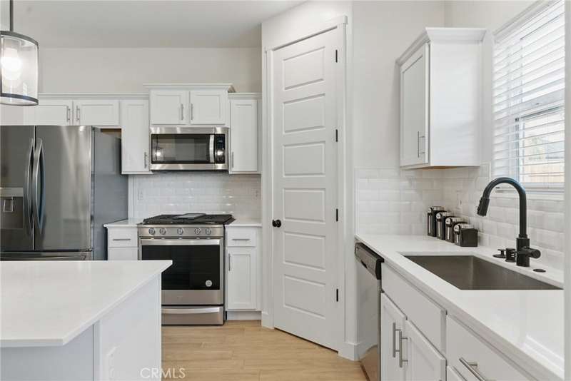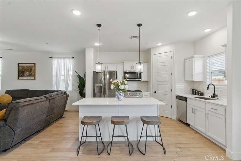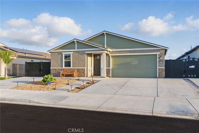 Welcome to 6109 Pareto Place – Where Modern Elegance Meets Comfortable Living! Step into this stunning 4-bedroom, 2-bath home nestled in the highly sought-after community of Southwest Bakersfield. Built in 2022, this nearly new residence offers a seamless blend of style, function, and energy efficiency. From the moment you enter, you’ll be greeted by a bright and open floor plan featuring high ceilings, luxury flooring, and abundant natural light. The gourmet kitchen boasts sleek quartz countertops, a spacious island with bar seating, stainless steel appliances, and a walk-in pantry – perfect for both everyday living and entertaining. The primary suite is a private retreat, complete with a spa-like ensuite bathroom featuring a large walk-in shower, and a generous walk-in closet. Three additional bedrooms provide flexibility for family, guests, or a home office. Step outside to a beautifully landscaped backyard—ideal for morning coffee, summer BBQs, or relaxing under the stars. With solar panels to help reduce energy costs, a finished 2-car garage, and a location near schools, parks, shopping, and easy freeway access—this home truly checks all the boxes. Don’t miss your chance to own this turn-key gem in one of Bakersfield’s most desirable neighborhoods!
