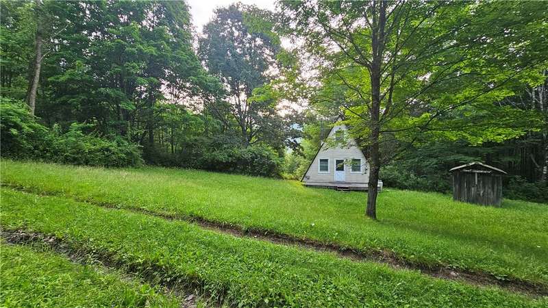 End of Season Sale! Price drastically reduced for a 2025 sale! Tucked away on nearly 8 acres of woodlands, just a few minutes from Artic China State Forest and Steam Mill State Forest. A-frame cabin offers rustic serenity and modern comfort. Open the front door and witness the deer as they travel across your land. As hunting season approaches, this would make a great hunting camp. Two bedrooms up the loft steps, which could sleep up to 4 people, maybe more. Includes fully connected septic, electric, and water from a gravity fed spring so you won't miss those modern conveniences. There is a wood stove in the living room that heats up nicely. Add a mini-split and you could make this into year round living. PLUS-it comes fully furnished! Wake up to the sounds of birdsong, sip coffee on your deck surrounded by towering trees, and experience the magic of upstate New York living. The property does front onto St Hwy 8, but direct access is off of Dunbar Rd, then a shared road to the house. A rare opportunity to own a piece of Delaware County's natural beauty?don't miss out!Highly recommend truck or SUV to access. It's a bit rough and bumpy.
