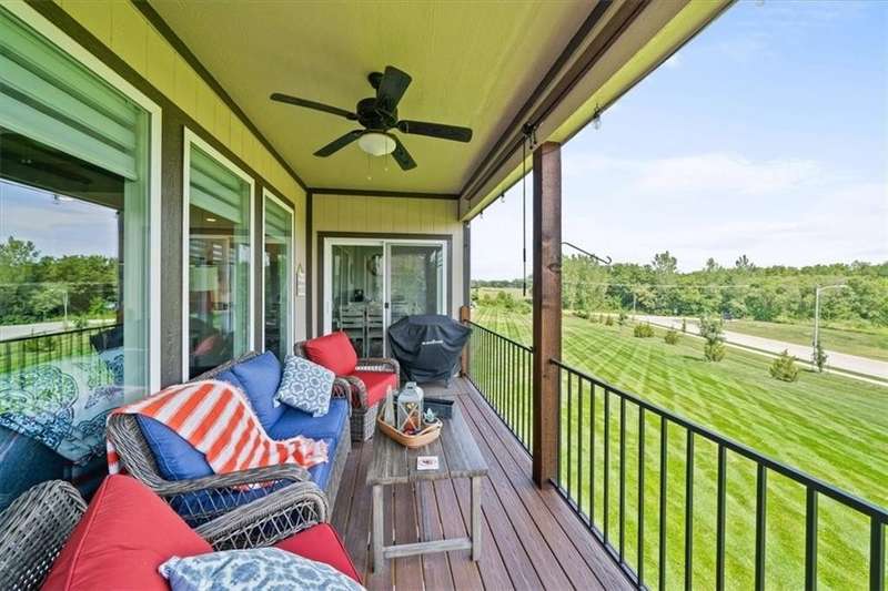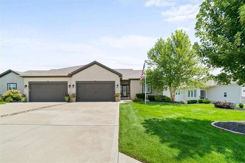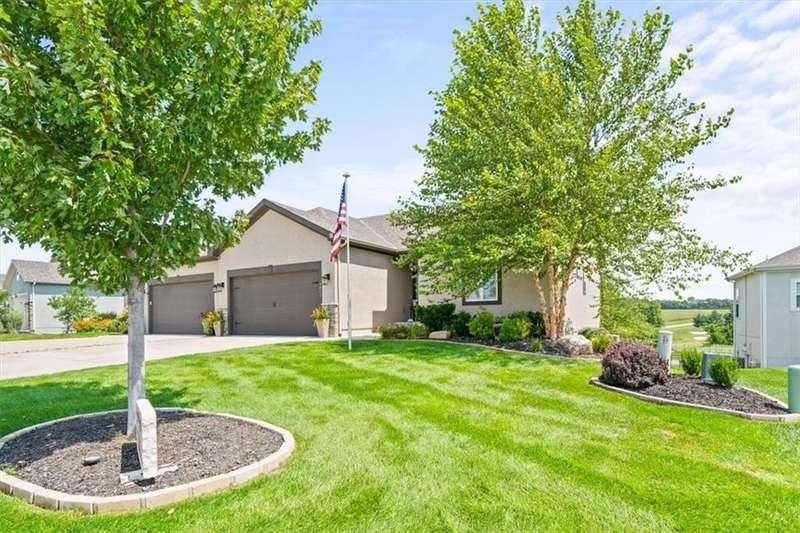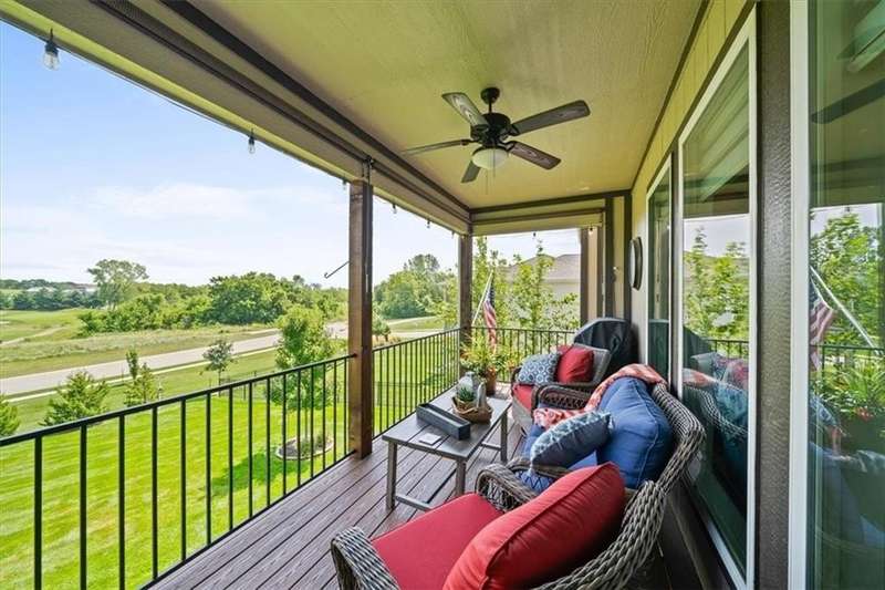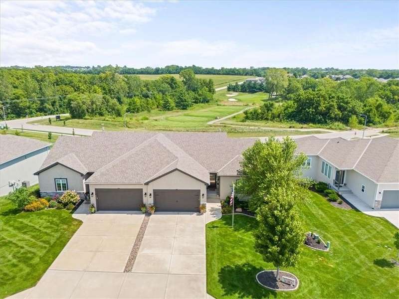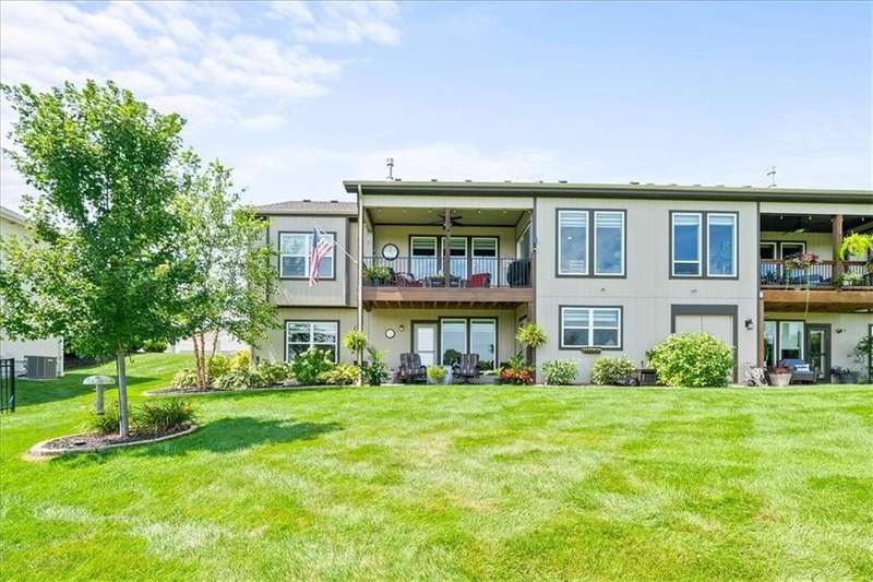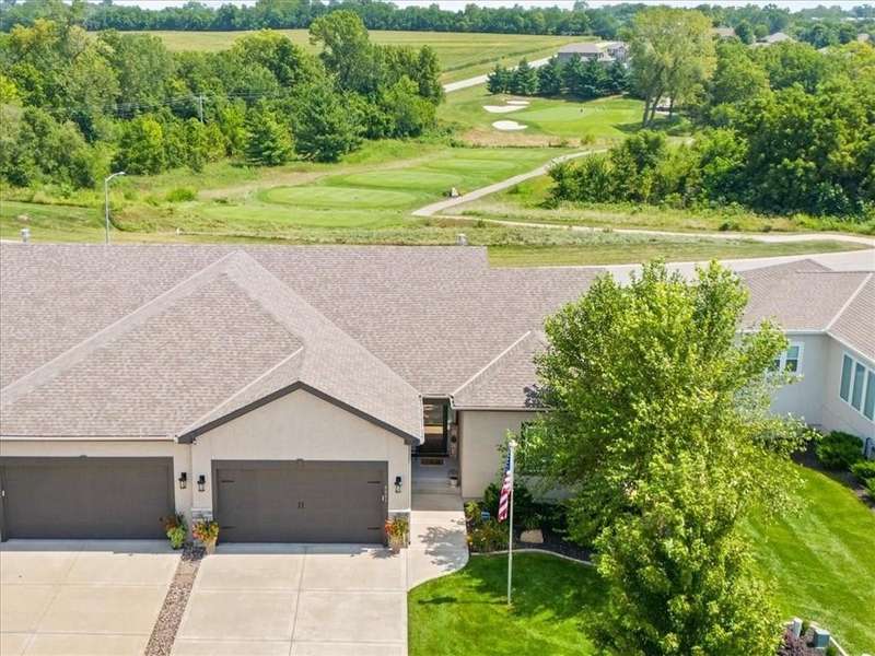 Back on the market at no fault of seller with a New Price on this lovely villa with a GOLF COURSE view! Enjoy the sunrise every morning! This immaculate home is on an amazing walkout lot with a large back yard maintained by the HOA! Enjoy the view or watch the sunrise from the dining room, living room, primary bedroom, the upper deck and the lower patio! The sellers have made many improvements to the home including storm doors, composite deck, custom window treatments, and additional insulation in attic. The home includes a main floor primary bedroom, primary bathroom with laundry attached to the oversized primary closet as well as a "pocket" office. The great room boasts cabinets on either side of the fireplace and a wall of windows for that view! The lower level includes a rec room that walks out to a patio, bedroom and a bath plus a fantastic workshop area with door out to the lower patio. HEATED Garage! Don't miss this opportunity to live in a beautiful golf course community for well under $500K!! HOA maintenance includes lawn maintenance (mow/trim, weed/feed, sprinkler turn on/off, landscape maintenance) and snow removal over 2 inches. Also includes the replacement of paint, gutters, and roof as needed. Falcon Lakes is just 10 minutes to the Legends Dining and Entertainment district and 30 minutes to the airport. Easy highway access makes it easy to get any where in the metro area. Acclaimed Basehor-Linwood schools!