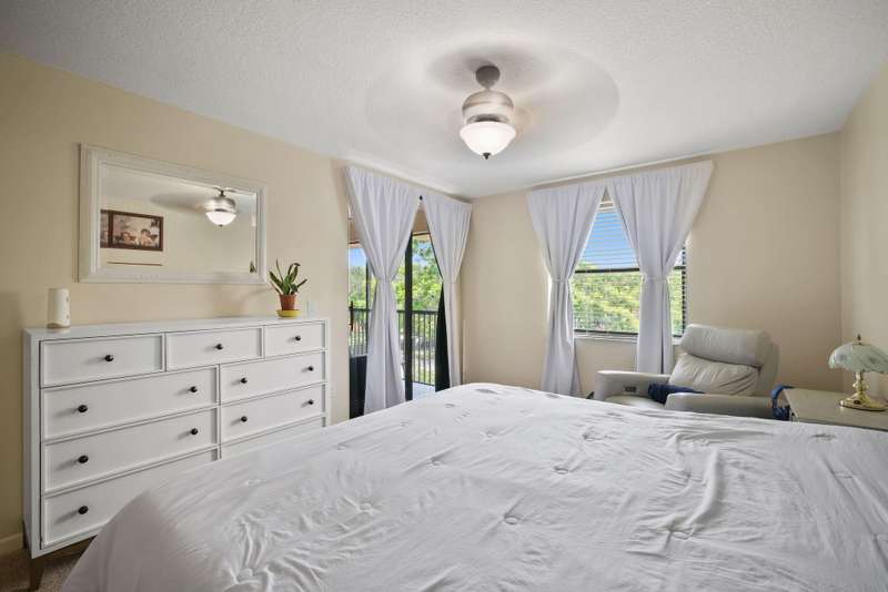 Seller motivated—make an offer! VA Approved! Beautiful top-floor corner unit in Bayside Village. This spacious condo features a split floor plan with approximately 1,100 sq ft. Enjoy a modern kitchen with quartz countertops, white cabinets, and all-new stainless steel appliances. The main areas feature tile flooring, while bedrooms have carpet, & the bathrooms have been updated. Relax on the screened balcony with expansive views of the lake. Both bedrooms offer walk-in closets. Impact windows/doors, washer/dryer, & fresh paint throughout. Residents have access to resort-style Township amenities, including an aquatic center, fitness center, tennis courts, basketball courts, beach volleyball courts, clubhouse, theater, & more. Close to shopping, dining, & highways.