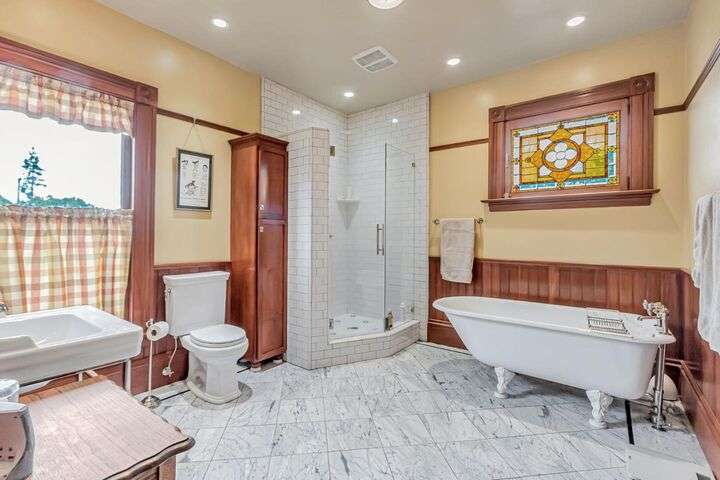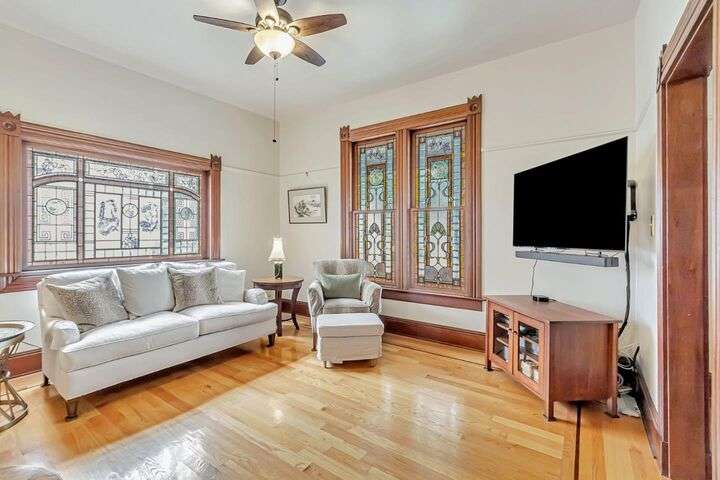 Step into timeless elegance at this majestic Victorian home. Impeccably restored, improved, upgraded, updated, and enhanced in Naglee Park! A truly one-of-a-kind property that is ready for the discerning eye of historic home enthusiasts with an overwhelming abundance of modern-day conveniences. Features include gleaming oak hardwood flooring with walnut inlays, high ceilings, restored decorative moldings and door frames, and large wood frame DP windows. Several unique custom-made stained-glass windows including amazing art pieces in the living room. Exquisite light fixtures including bronze chandelier and sconce with Murano hand-blown glass globes. Spacious kitchen upgraded but kept with period detail include butler pantry, cherry cabinets, soapstone counters, and Wolf range included with the high-end SS appliances adjacent to laundry room with LG appliances. Two remodeled full bathrooms with clawfoot tubs, spacious primary with built in stall shower and marble floors, secondary with hex tile flooring and marble counters. Heavily upgraded infrastructure! Upgraded foundation in 2012. Solar array with battery storage. Copper plumbing 2010 and wiring circa 2002, 100amp panel in 1992, new sewer piping including lateral and clean out 2022, water softener, Central AC, and so much more.