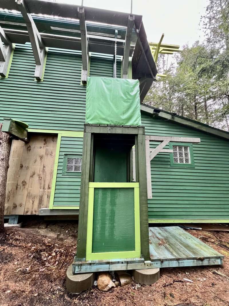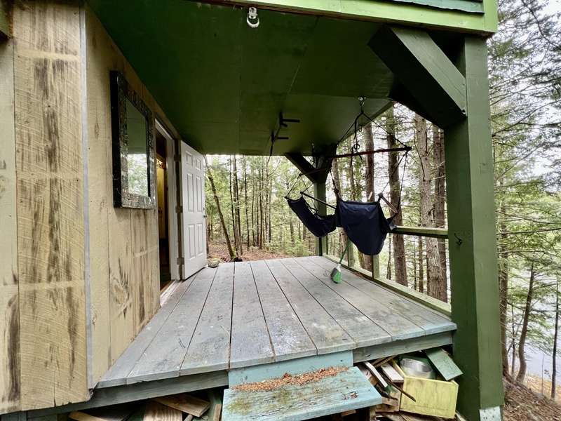 Park at the end of the driveway by the sign and walk in. Off-Grid Riverfront Retreat - Hand-Built Cabin. Nestled on 3.4 wooded acres with 215 feet of frontage along the tranquil Piscataquis River, this hand-crafted, multi-level cabin blends rustic charm with thoughtful comfort. Located just 40 minutes from Bangor—this unique property offers peaceful seclusion for a getaway or retreat. Designed with Maine's seasons in mind, the cabin features fully insulated 2x6 walls, 2x12 floors, a wood stove that keeps things warm and cozy when it gets chilly. The interior includes a changing area with double closets, a new composting toilet, and a manual sink system for hand washing and teeth brushing. Cooking is done in the dedicated outdoor kitchen, equipped with a propane grille. A covered outdoor shower and a 660-gallon rainwater catchment system (2 x 330-gallon tanks) support your off-grid lifestyle. Solar-power for lighting provides sustainable, low-impact illumination throughout the property. There is NO septic, well, or refrigeration in place. Access is via a private drive which needs some improvement in order to be able to drive in. Parking area is a short 250-foot footpath to the cabin. While the seller reports visible boundary pins, there is no formal survey on file. Whether you're a nature enthusiast, seeking a quieter pace of life, or exploring alternative living, this off-grid riverfront retreat offers a rare chance to unplug and reconnect—on the water, under the stars, and fully off the grid.