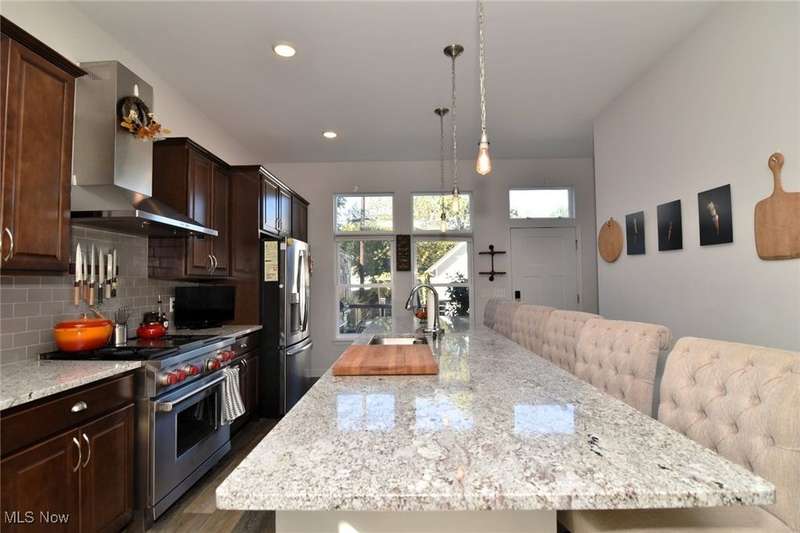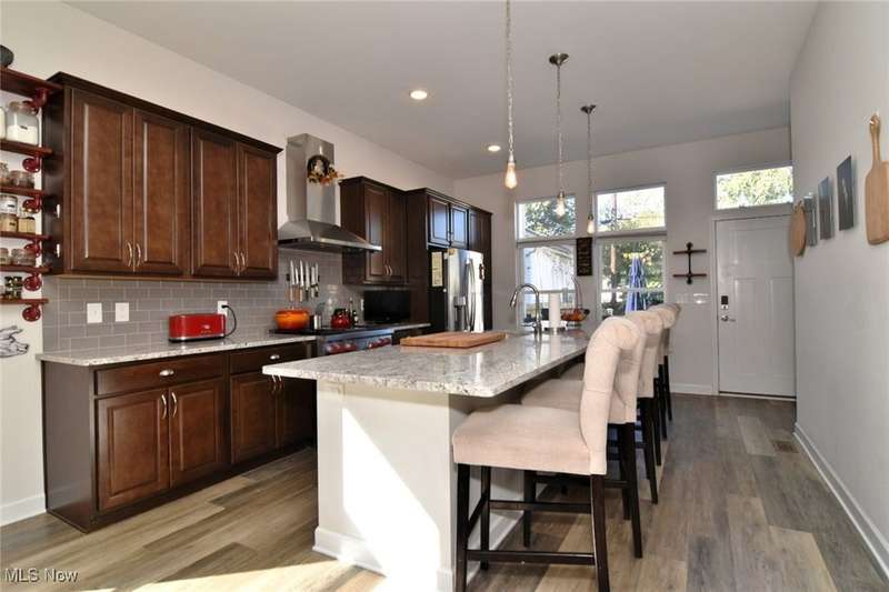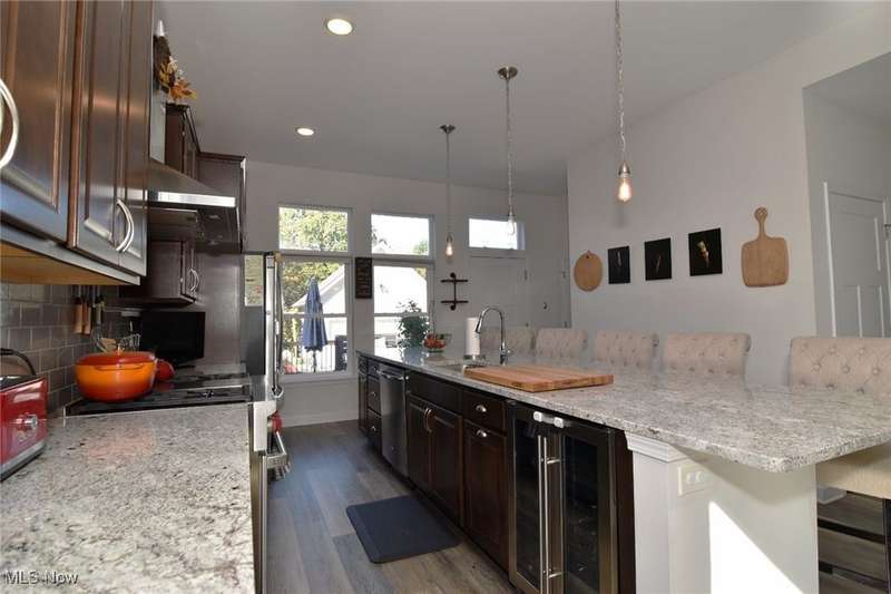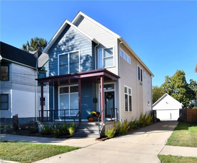 Welcome to 1962 West 47th located in Ohio City in Cleveland Ohio. 2018 New built, this Three Bedroom, Four Bathroom has everyone one wants for city living. Front Porch with sturdy railings greet from the sidewalk and street. The open concept is welcoming with the large living room highlighted by large street facing front windows and builts-ins which surround the Fireplace and Television. The whole first floor is luxury plank flooring, waterproof and wearing well. The Kitchen, the heart of the home, and with the large 11 1/2 feet long Granite Island, everyone gets a seat. Stainless Steel Fridge, Dishwasher, Wine Fridge and 36" wide, Commercial Grade Wolf Stove and Range with fully vented stainless steel hood. Deep Sink and custom cabinets all make this kitchen awesome for hosting or just for the family. The Second floor Primary Bedroom has an en-suite bathroom, walk in closet, nook, loads of natural light, huge elevated ceiling and bathroom with great tile work and sleek design. Bedrooms Two and Three are also carpeted and have great closet space. The stackable Laundry is in the upstairs hallway, next to the second Fully Bathroom on this level. The basement has a rec room has luxury plank flooring with cool built in bar area, half bathroom and a workout / storage area in the larger unfinished area. The Cement Driveway extends all the way back to the garage, but backs up to the edge of the property. Two Car Garage with Fenced in Backyard including green space, built-in raised garden beds, pergola and direct sunlight. *sunlight not guaranteed in Cleveland*. Convenient to freeways, medical, retail, sports, arts, dining, you are in the heart of cleveland, Ohio City to be exact, Welcome Home.
