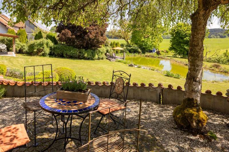 Spacious detached house with alpine views - your new home with a special flair How about getting away from it all and recharging your batteries in your own oasis of well-being? This charming detached house offers you exactly this opportunity - in the midst of beautiful surroundings with sweeping views as far as the Alps. The property was built in 1977 on a plot of around 3,288 m² and extensively renovated in 2004. With a total living space of approx. 343 m² and a total of 10 rooms, it offers an exceptional amount of space - ideal for large families, multi-generational living or even the realization of a small guesthouse. Inside, you will find a well thought-out room concept with a wide range of possible uses: Eight rooms can be flexibly arranged as bedrooms, study rooms, guest rooms or children's rooms. Two spacious, bright bathrooms ensure that no one is short of something to do in the morning. The heart of the house is the first floor with an open-plan living and dining room directly adjacent to the kitchen - perfect for communal meals and sociable evenings. A separate room offers a retreat, as does another room that is currently used as a hunting room. The spacious garden is a true oasis of well-being: enjoy the unobstructed view of the greenery, relax in your own swimming pond on warm days or wind down at the end of the day in the in-house sauna. Here, quality of life, space to develop and living close to nature are combined in a special way. Have we piqued your interest? Then we look forward to showing you this special house in person.