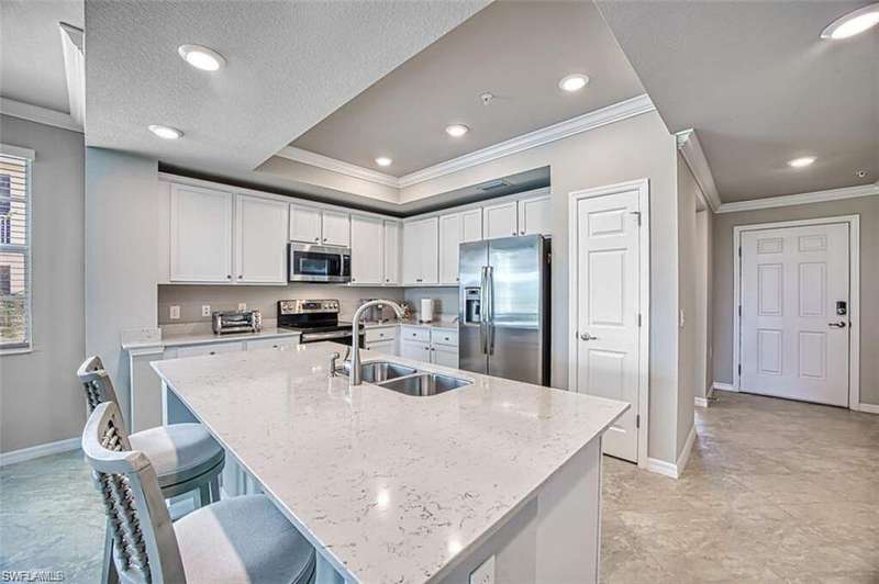 Welcome to your dream home at 10720 Palazzo Way #206 in Fort Myers, FL! This stunning end-unit condo, built in 2019, offers a perfect blend of modern luxury and comfort. With 1,406 square feet of living space, this 3-bedroom, 2-bathroom condo provides plenty of room for entertaining. The open floor plan features a contemporary kitchen with GE stainless-steel appliances, quartz countertops, pantry and a large island, seamlessly flowing into the dining and living areas. The primary bedroom features an ensuite with a walk-in closet, dual sinks and a large shower. Enjoy expansive golf course and lake views from your balcony, perfect for morning coffee or evening relaxation. The carport is equipped with golf cart charging stations. Located in the desirable and active 55+ community of Pelican Preserve, you'll have access to many amenities at its Town Center, including a resort-style pool, fitness center with indoor pool, pickleball and tennis courts, a choice of two restaurants, movie theater, dog parks, walking trails, amphitheater and more. In addition, the Palazzo neighborhood boasts its own pool with an outdoor kitchen, while The Club at Pelican Preserve offers 27 holes of golf over 3 courses (membership optional). Close to shopping, dining and entertainment, as well as easy access to I-75 and Southwest Florida International Airport. This condo is a true gem, offering a luxurious lifestyle in a vibrant community. Don't miss the opportunity to make it your own!