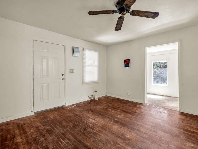 Packed with potential and full of character, this handyman special is the perfect opportunity for buyers looking to add value through updates and personal touches. This 2-bedroom, 1-bath home features a walk-out basement, which could be used for storage or converted into additional living space. In the bright kitchen, large windows frame serene winter views. A durable metal roof provides long-term peace of mind, while the covered front porch offers the perfect space to step out of the elements. A little bit of flooring and sheetrock added to the bathroom and front bedroom will increase the main square footage by 325 square feet.