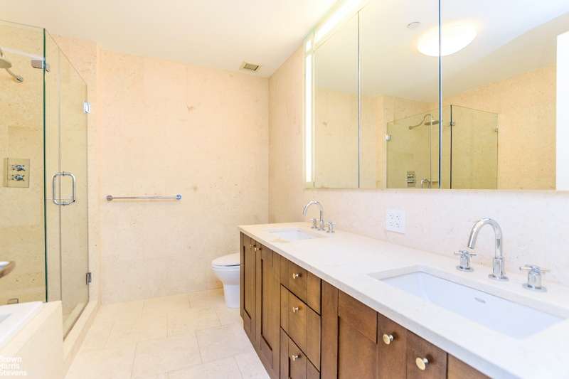 Take in spectacular views of the Hudson River and the Palisades from your private balcony. The primary bathroom includes radiant heated floors and a deep soaking tub-perfect for unwinding. A washer and dryer are included in the apartment for added convenience. The two additional bedrooms are ensuite, and there is also a separate powder room. Each room is equipped with a PTAC heating and cooling unit.