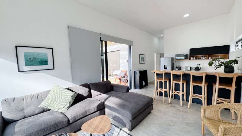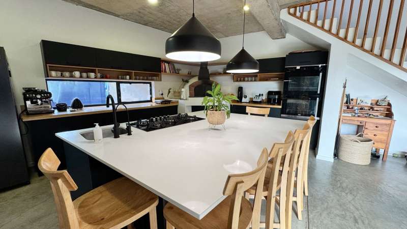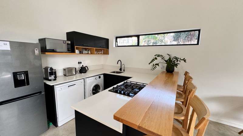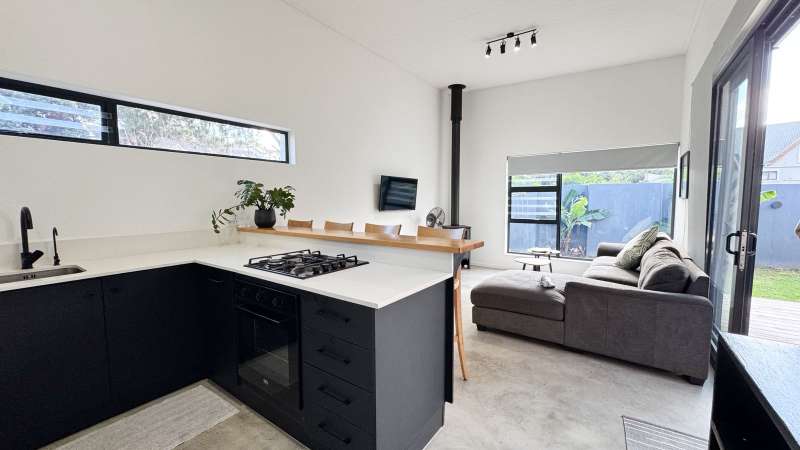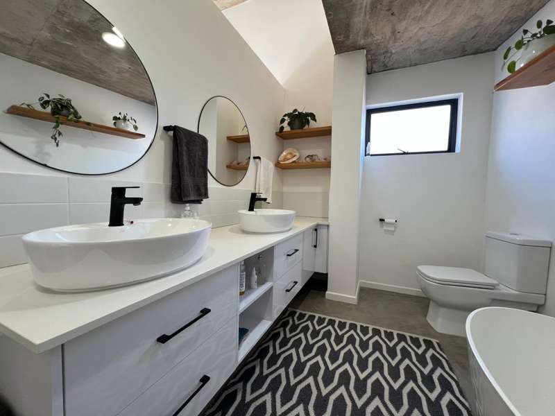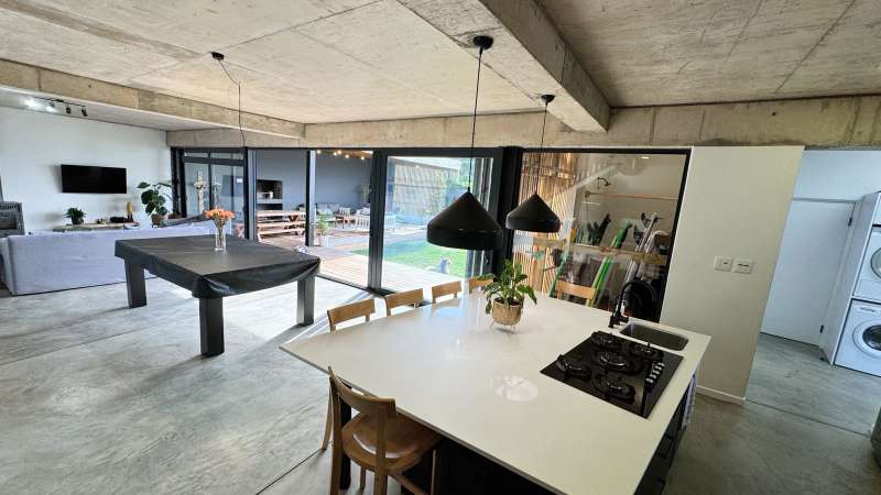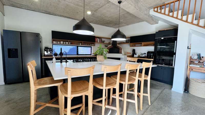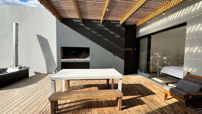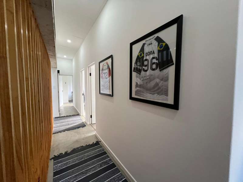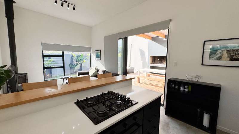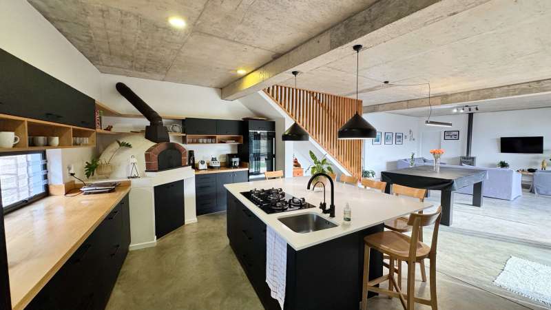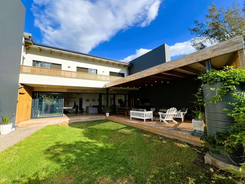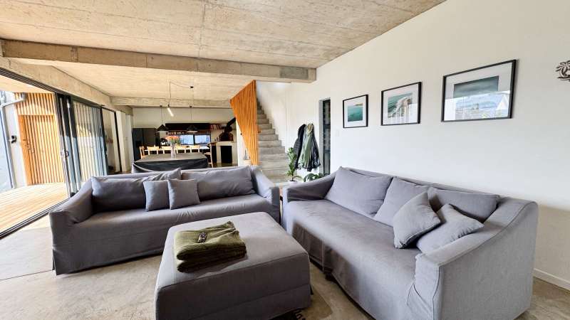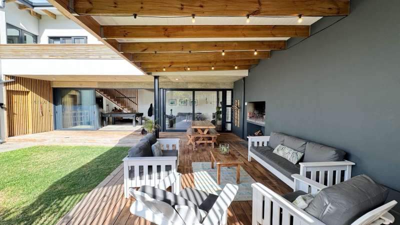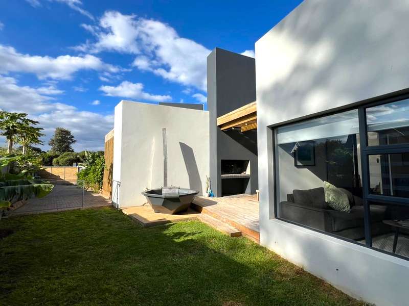 Joint Exclusive Instruction- Set just steps from one of the world’s most renowned surf breaks, this contemporary coastal abode embodies the ultimate in refined seaside living. Perfectly positioned and thoughtfully designed, this North facing home is a rare fusion of architectural elegance, modern comfort, and income-generating potential. Designed for seamless indoor-outdoor entertaining, the main living area on the ground floor flows effortlessly from a chef-inspired kitchen—complete with double ovens, gas hob, pizza oven, and scullery—into the open-plan dining and lounge spaces. Expansive custom aluminium sliding doors lead out to a manicured garden and a generous, covered patio with built-in braai. A bespoke surf rack, with ample board racks and a separate private shower room, after a surf or a fun day at the beach, completes the lifestyle offering for ocean lovers. Upstairs, 4 beautifully appointed bedrooms exude understated luxury. The serene private Main Bedroom includes a full en-suite bathroom, while a second bedroom enjoys a private en-suite with shower. Two additional bedrooms are served by a stylish shared bathroom. A dedicated study nook enhances functionality, while a vast Rooftop terrace delivers panoramic views of the bay—perfect for sunset cocktails or stargazing soirées. Adding exceptional versatility is a private three-bedroom flatlet with its own entrance, covered patio with a Built-in-braai; Hot tub; outside shower; garden; kitchen; lounge, and bathroom—ideal for extended family, guests, or as a lucrative Airbnb opportunity. Premium Features Include: • Air-conditioned Primary suite upstairs • State-of-the-art solar system: Inverter, 14 solar panels & two batteries • Rainwater harvesting: 3 x 5000L filtered tanks + 2 x 1000L backup tanks • Dual Paloma gas geysers • Enclosed vegetable garden & charming Wendy house A rare opportunity to own a luxurious coastal escape that delivers not just beauty and comfort, but sustainability and income potential. Whether you're seeking a stylish family home, an elite holiday retreat, or a savvy investment, this exceptional property captures the very best of beachside living in Jeffreys Bay. Why wait? - Contact me for a private viewing