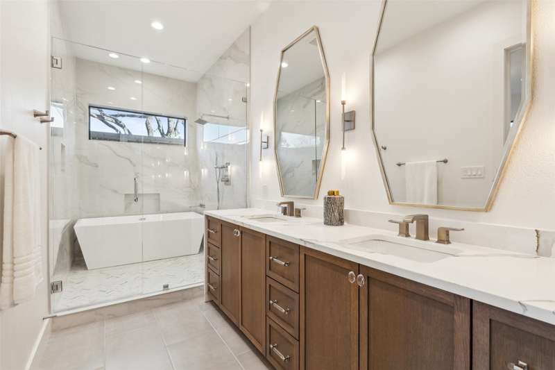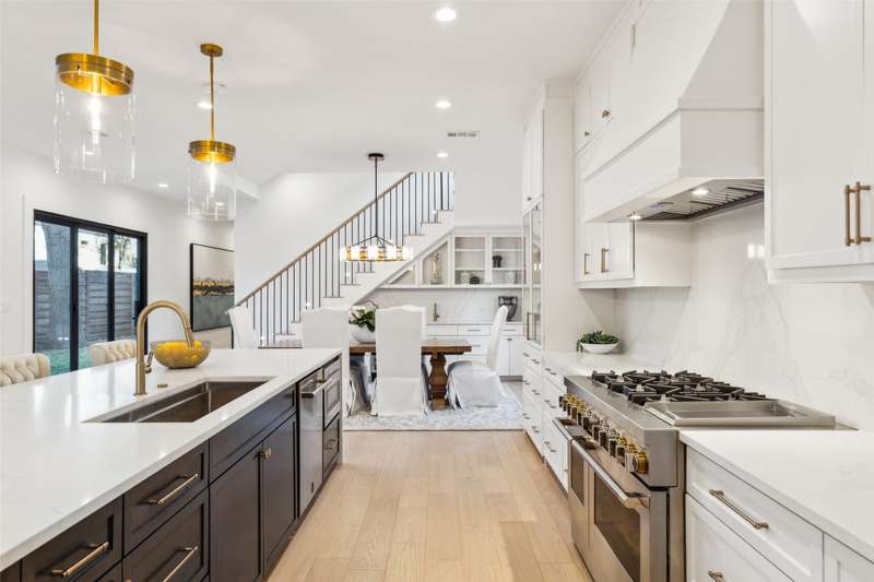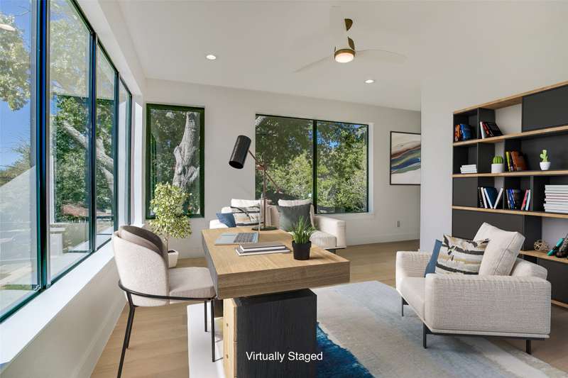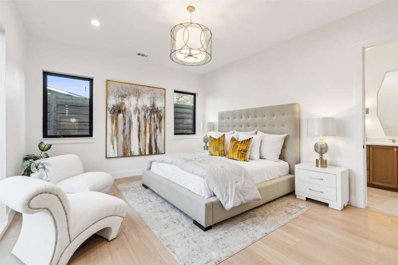 Nestled in the Little Preston Hollow neighborhood close to ESD and other top private schools, this contemporary masterpiece offers an unbeatable location and exceptional high-end finishes. Spanning over 5,600 square feet, this thoughtfully designed home exudes modern elegance and sophistication. Wide plank flooring, custom tile selections, stunning lighting and soaring vaulted ceilings enhance its luxurious appeal. Picturesque windows bring the natural light into the downstairs living areas. The gourmet kitchen features a commercial-grade gas range, built-in refrigerator, large island with waterfall edge, wet bar and a walk-in pantry with quartz countertops. Also located on the first floor is the primary suite, a tranquil private retreat with a spa like bathroom and custom closet with an additional washer and dryer hookup. Four guest bedrooms upstairs, with one serving as an optional second floor primary suite, all have generous walk-in closets. More entertaining space upstairs includes a second floor living room and a third-floor game room with a wet bar. An elevator-ready layout ensures long-term convenience. Seamless indoor-outdoor living with meticulously landscaped grounds provides the perfect setting for relaxation or hosting guests. Moments from top schools, fine dining, and premier shopping, this home redefines modern luxury living.
