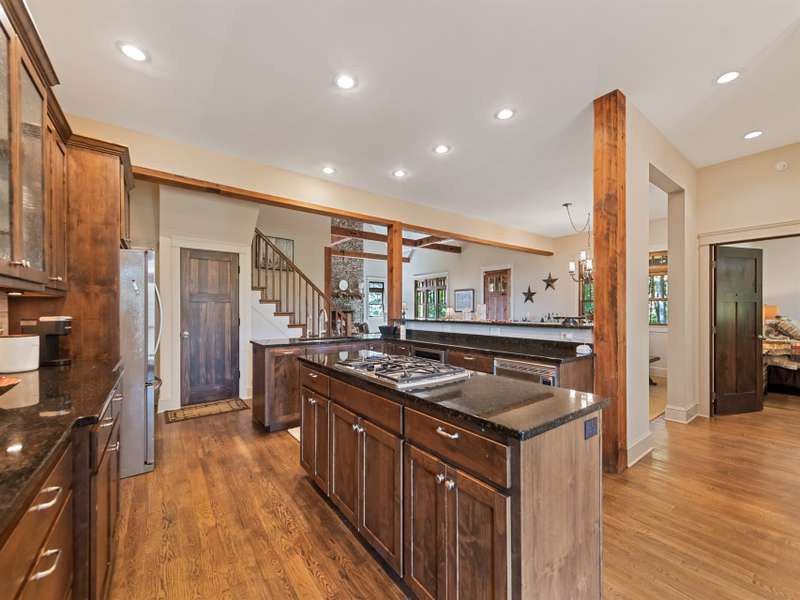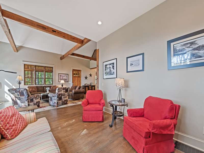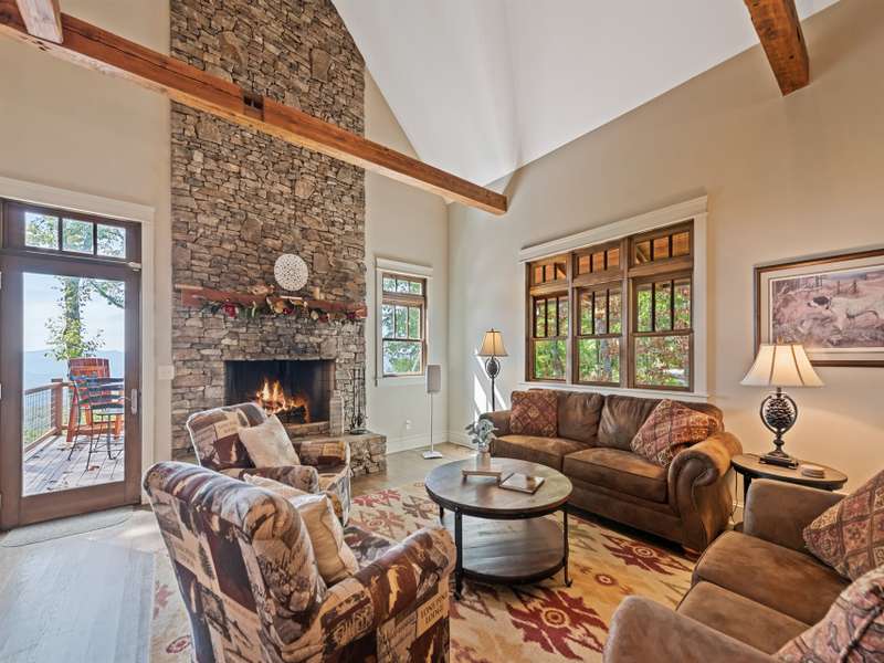 Seeking a Private Scenic Mountain Retreat that blends exquisite Rustic Style with Luxury & Nature? Search no further than 1635 Quest Ridge nestled atop a ridge line in Jackson County, NC. Situated at 3500 feet in elevation this home boasts of the long range layered Blue Ridge Mountain views from both sides. Offering over 3,800 square feet of functional living space in addition to a newly heated partially finished basement, this home is sure to please. Enjoy a chef's kitchen custom created with granite tops, double wall oven, stainless appliances, island, pantry & breakfast corner. Hosting your guests in the open concept living area with stacked stone fireplace, rustic beams from Pennsylvania barn wood, a separate sitting area and stunning views will enhance any gathering. Primary suite offers a spacious bedroom, heated floor bath, claw foot tub and pebble stone shower. Meander upstairs to see how well 3 additional bedrooms plus a bonus room served by 2 full baths will accommodate a plenty of guests. Designed for entertaining the grassy level backyard has a fire pit, an old corn crib converted to a bar with lights! If all of this is not enough, dip in the hot tub that seats 6 while overlooking your dream view. Oversized 3 car garage provides dry warm parking on the main level. You're invited to come view the stunning vistas from the covered porch or open deck and envision your future retreat! Adventure out to hike the Great Smoky Mountains National Park, ride the Blue Ridge Parkway or raft the Nantahala! Just 20 minutes to Sylva, 25 minutes to Waynesville and 45 minutes to Asheville.