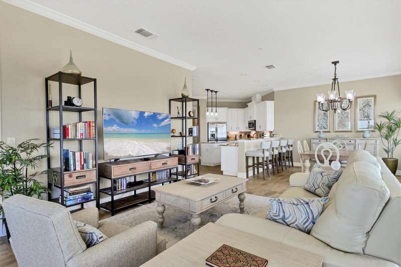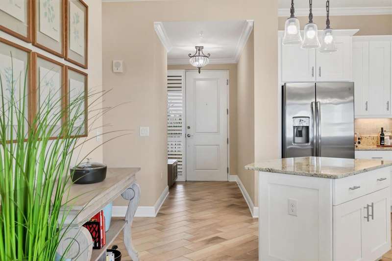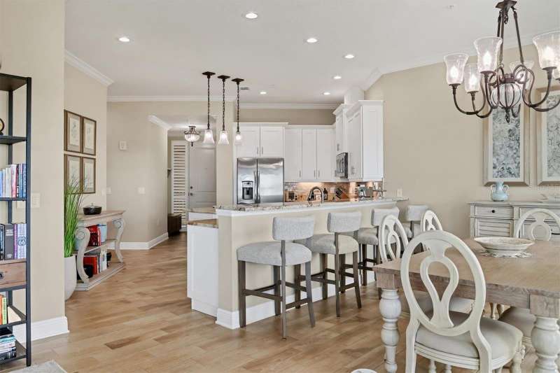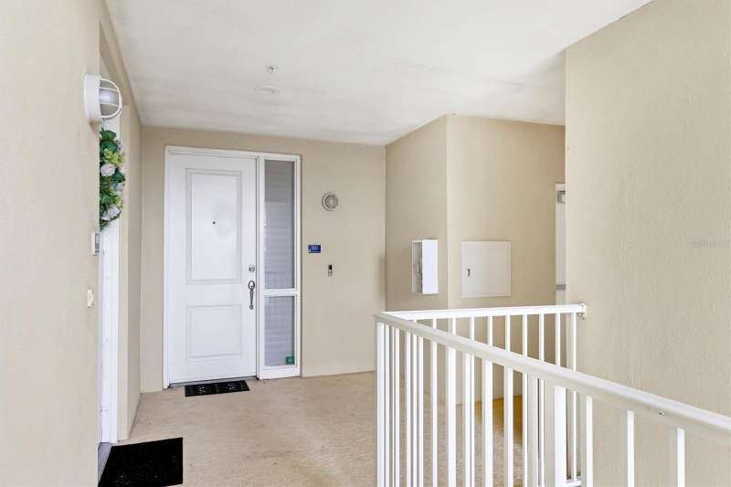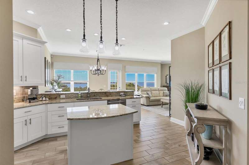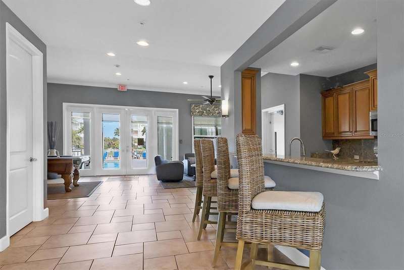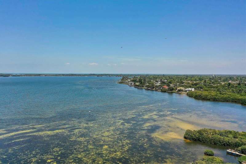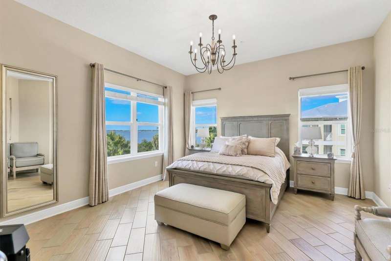 Welcome to Palma Sola Bay Club, an inviting coastal community where style and comfort meet the beauty of the bay. This top-floor residence offers sweeping views of Palma Sola Bay from every room, a backdrop that few homes can claim. A balcony extends the living area outdoors, ideal for morning coffee, evening cocktails, or just observing nature while enjoying the breeze. The kitchen features a large island and breakfast bar, perfect for casual dining or conversation while cooking dinner against the glow of the sunset. Inside, every detail has been thoughtfully chosen, from porcelain tile flooring throughout to custom valances and draperies that frame the view. High ceiling and 8-foot doors throughout with double doors opening to the primary suite, create a sense of arrival and understated grandeur. The suite includes an extended vanity in the bath and a custom-designed walk-in closet system. The split floor plan provides privacy, with a comfortable guest bedroom and full bath on the opposite side. An interior laundry room with upright freezer adds everyday convenience. Professionally decorated and offered turnkey furnished, the home is pristine and move-in ready. Two covered parking spaces and a private storage area are located beneath the building. Palma Sola Bay Club is a gated community offering a pool, clubhouse, bocce courts, putting green, dog park, and a sunset dock with kayak launch. A home where every day feels like a getaway, surrounded by comfort, elegance, and inspiring bay views.