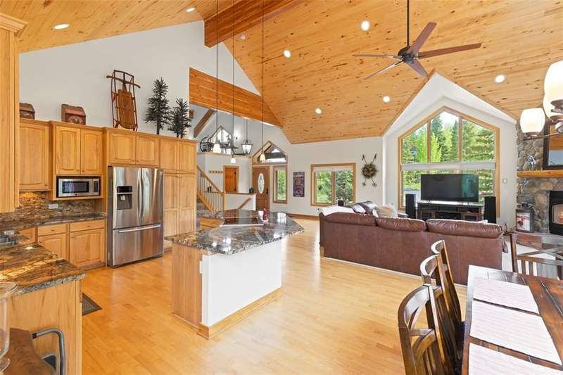 Nestled in the highly sought-after Willow Creek Highlands neighborhood, this beautifully updated home offers privacy, space, and stunning views. Set on a quiet, tree-lined cul-de-sac, this home boasts a south-facing driveway, invisible dog fence, sprinkler system, and smart home controls for lights and thermostats. Step inside to find a spacious open layout with three bedrooms, three and a half updated bathrooms, and a versatile loft—ideal for an office, media room, or easily convertible into a fourth bedroom. The large primary suite features its own cozy fireplace, offering a luxurious private escape. The gourmet kitchen has been stylishly upgraded and the home comes fully furnished with tasteful, mountain-modern décor—ready for immediate enjoyment. A massive 4-car (double tandem) garage provides ample room for vehicles, a workshop and all your mountain gear. Meticulously maintained including a new roof in 2024, new driveway in 2024, and new exterior stain in 2025. Outdoor living shines with two separate patios, each with its own gas fireplace, perfect for relaxing and entertaining year-round. Take in breathtaking views of the wetlands, the golf course, and Keystone Resort. Located in a no short-term rental (STR) HOA, this property is ideal for a full-time residence or second home.