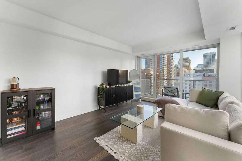 Live in the heart of Calgary’s West End in this 12th-floor one-bedroom condo at Avenue. Bright and modern, it features floor-to-ceiling windows, hardwood floors, and an open layout. The kitchen impresses with quartz counters, sleek cabinetry, gas cooktop, stainless steel appliances, and a central island with seating. The living area extends to a private balcony with skyline views, ideal for relaxing or entertaining. The bedroom includes a walk-in closet, while the 4-piece bath and in-suite laundry add everyday convenience. Titled underground parking and storage are included. Building amenities feature concierge service, a fitness center, and bike storage. Steps to the Bow River pathways, Prince’s Island Park, the LRT free zone, and Kensington’s shops and dining, this condo offers the perfect mix of comfort, convenience, and downtown lifestyle—an excellent choice for first-time buyers, downsizers, or investors.