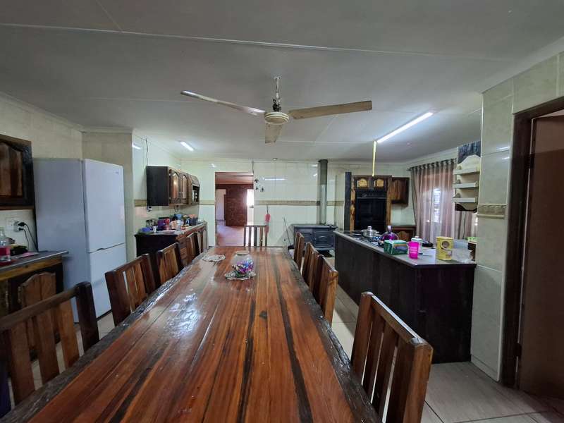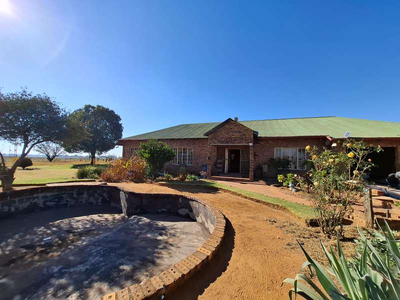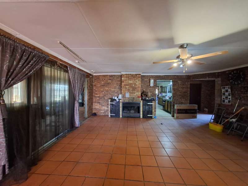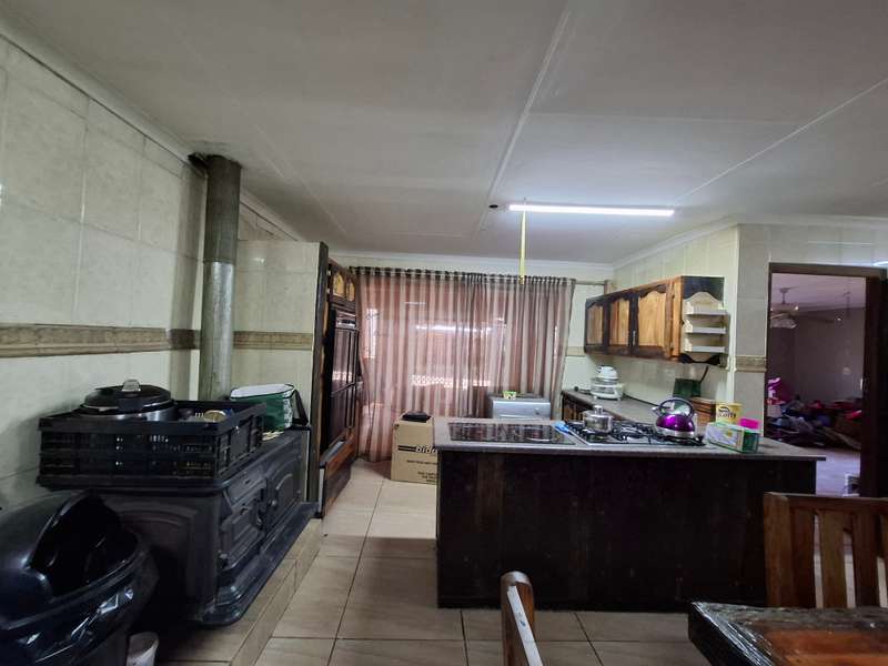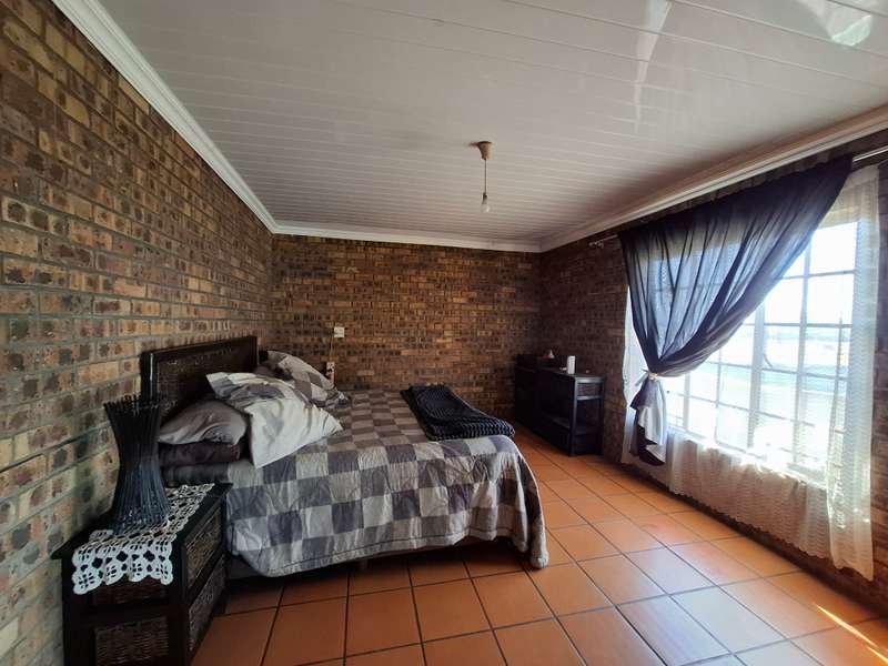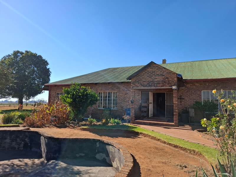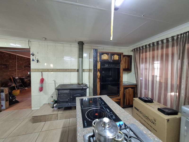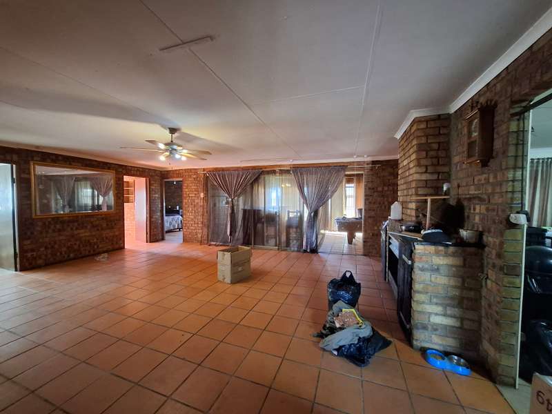 This 2.1 ha property is situated in the farming community with a 4-bedroom house and 3 flats, which can generate a good income. The main house is improved with 4 bedrooms, an open-plan living room with a fireplace that walks out to the entertainment area, and a beautiful kitchen with a Snappy Chef 2-plate stove, a gas stove, a coal stove, and eye-level ovens. The table in the kitchen was custom-made to fit in with the kitchen, which also walks out to the entertainment room. 2 bathrooms, of which one is en suite. The entertainment room has a bar and a pool table with a big glass-door fridge, which is included in the sales price. and a 1-bedroom flat with a small kitchen, an en suite bathroom, and an open-plan living space and have its own entrance. On the back of the house is a partially finished structure that can be finished for another flat or big family entertainment room. There is an aboveground splash pool that needs TLC. Double garage in front and a pond that can be used as a water feature or koi pond. Beautiful property. There are two big flats completely separate from the main house, one with 2 bedrooms, a kitchen, a living room, and a bathroom. The other flat has a double garage structure with a sunroom, open-plan kitchen, 1 bedroom, and en-suite bathroom. Eskom electricity: flats have prepaid electricity. There is a problem with the water on the property. The borehole needs to be fitted with casings. There is municipal water, but it doesn't feed the house at the moment. There are 3 2500-liter water tanks that get filled up once a week with a water truck.