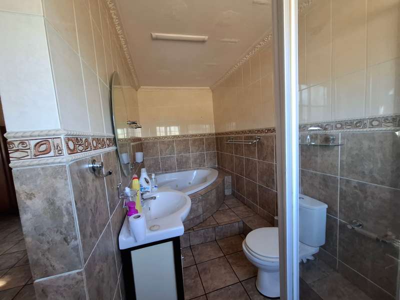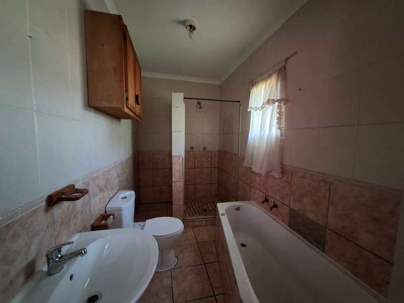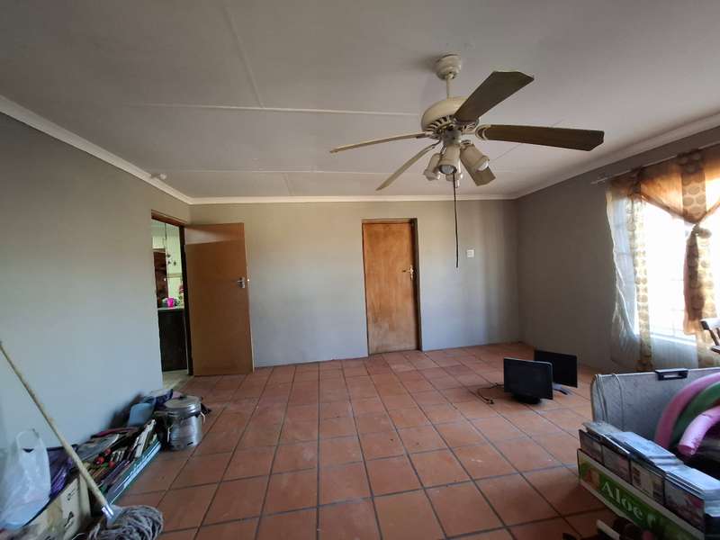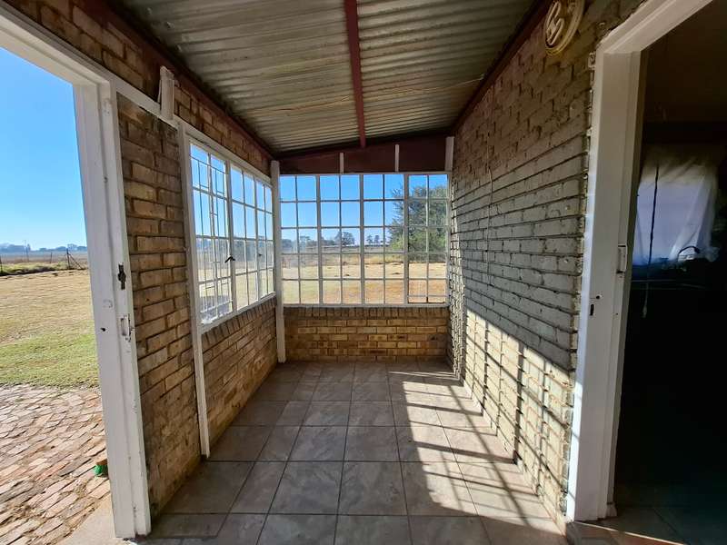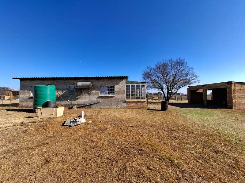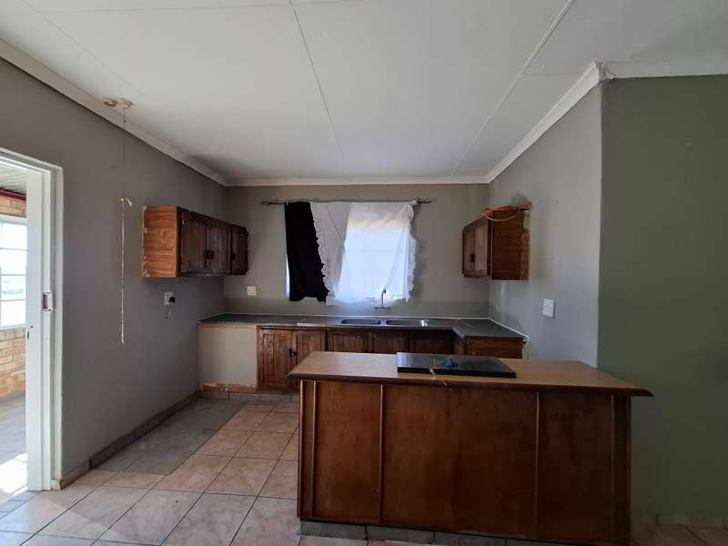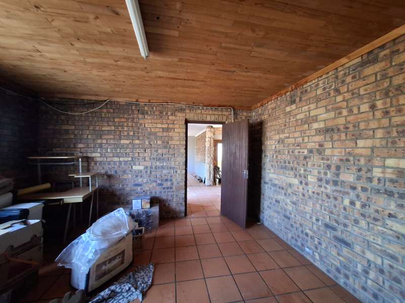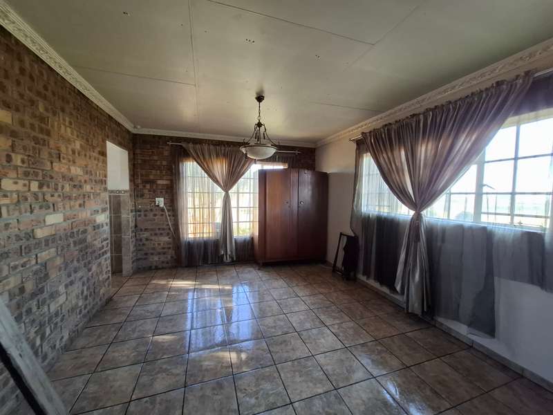 This 2.1 ha property is situated in the farming community with a 4-bedroom house and 3 flats, which can generate a good income. The main house is improved with 4 bedrooms, an open-plan living room with a fireplace that walks out to the entertainment area, and a beautiful kitchen with a Snappy Chef 2-plate stove, a gas stove, a coal stove, and eye-level ovens. The table in the kitchen was custom-made to fit in with the kitchen, which also walks out to the entertainment room. 2 bathrooms, of which one is en suite. The entertainment room has a bar and a pool table with a big glass-door fridge, which is included in the sales price. and a 1-bedroom flat with a small kitchen, an en suite bathroom, and an open-plan living space and have its own entrance. On the back of the house is a partially finished structure that can be finished for another flat or big family entertainment room. There is an aboveground splash pool that needs TLC. Double garage in front and a pond that can be used as a water feature or koi pond. Beautiful property. There are two big flats completely separate from the main house, one with 2 bedrooms, a kitchen, a living room, and a bathroom. The other flat has a double garage structure with a sunroom, open-plan kitchen, 1 bedroom, and en-suite bathroom. Eskom electricity: flats have prepaid electricity. There is a problem with the water on the property. The borehole needs to be fitted with casings. There is municipal water, but it doesn't feed the house at the moment. There are 3 2500-liter water tanks that get filled up once a week with a water truck.