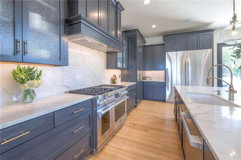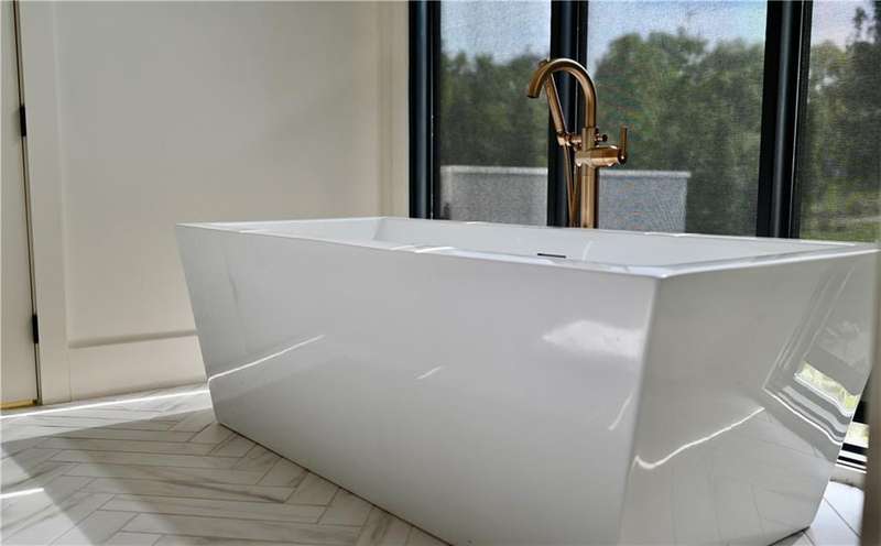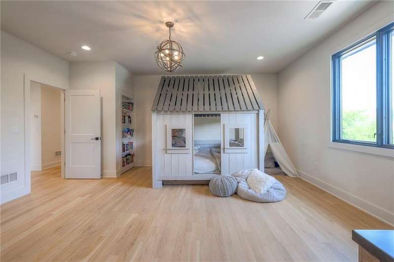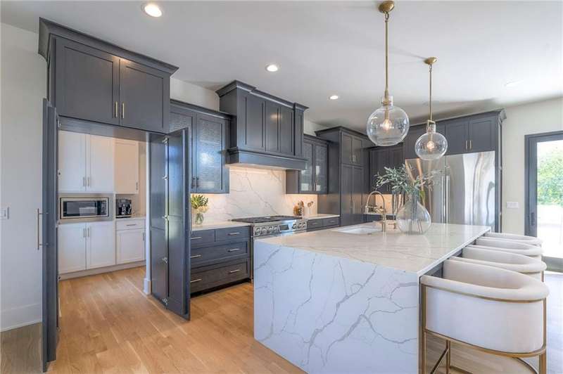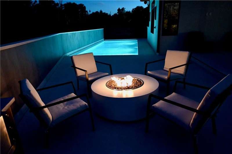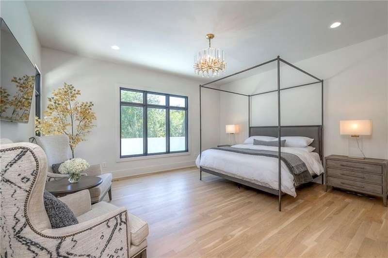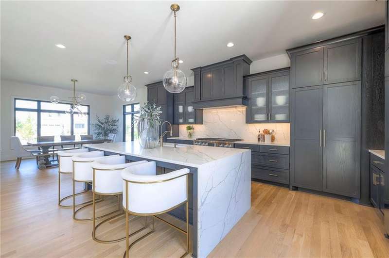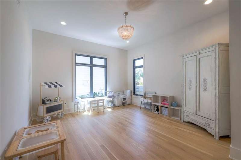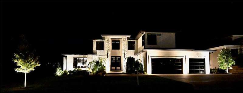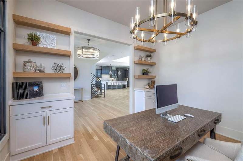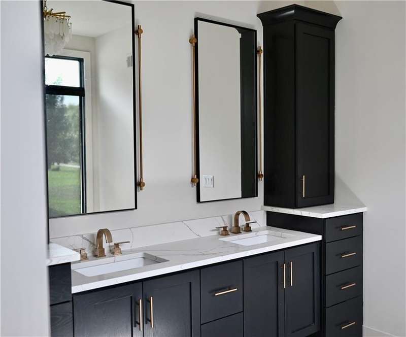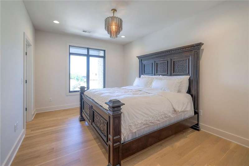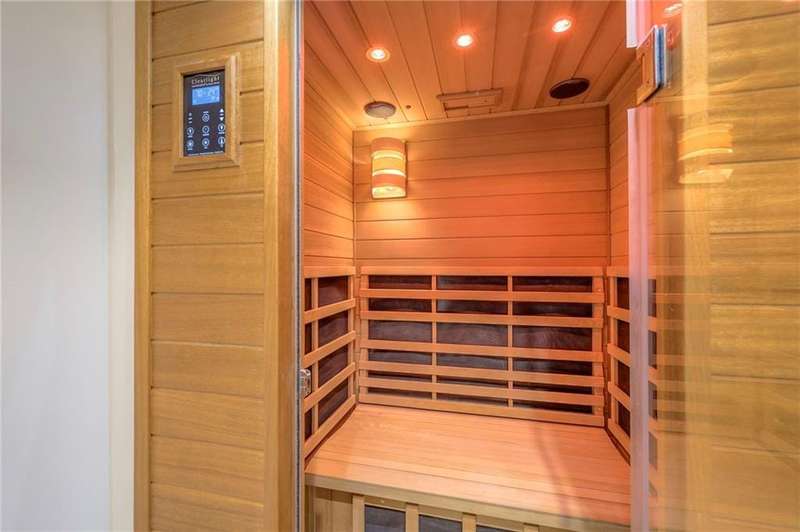 Discover modern elegance in this custom-built 1.5-story home, offering over 5,000 sq. ft. of living space on a private half-acre lot. This residence blends sophisticated design with everyday comfort. Step inside to soaring 20-foot ceilings, a dramatic floor-to-ceiling fireplace, and white oak hardwood floors throughout most of the home. The open main level is filled with natural light and features built-in speakers, Restoration Hardware light fixtures, and a seamless flow into the chefs kitchen. Here youll find LG Signature appliances, quartz countertops, and an oversized walk-in pantry with sink and built-in microwave oven. The main-level primary suite is a retreat of its own with outdoor access, dual walk-in closets, and a spa-like bath with walk-in shower, soaker tub, and modern finishes. A second bedroom with ensuite bath, a dedicated office, large laundry with pet washing station, and an additional powder room complete the first floor. Upstairs offers three oversized secondary bedroomseach with walk-in closets and ensuite bathsplus a versatile loft perfect for a TV room or office. The lower level is designed for wellness and future expansion, featuring a home gym, built-in infrared sauna, daylight/egress windows to add 2 bedrooms, & stubbed plumbing for an additional bath and bar. The garage is a showstopper in itself, with epoxied floors, tinted glass doors, an electric car charging setup, electric heater, battery backup garage door openers, & built-in cabinets. Step outside to your private backyard oasisan entertainers dream. The sport design pool with automatic cover sits alongside a travertine marble tile patio that stays cool underfoot, a gas fire pit, and an outdoor kitchen loaded with a smoker, pizza oven, wood-fire grill, freezer/fridge, and griddle (all never used). Built-in speakers extend outside as well. Additional highlights include a dual-zone HVAC system, pre-wiring for a generator, & outstanding neighborhood amenities.