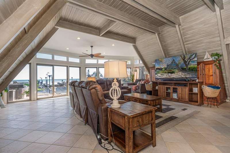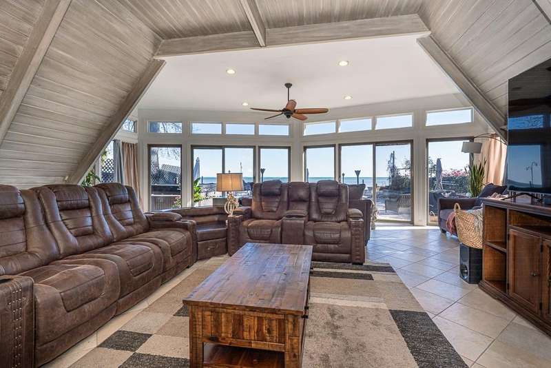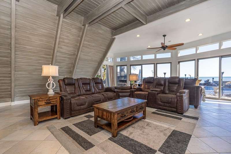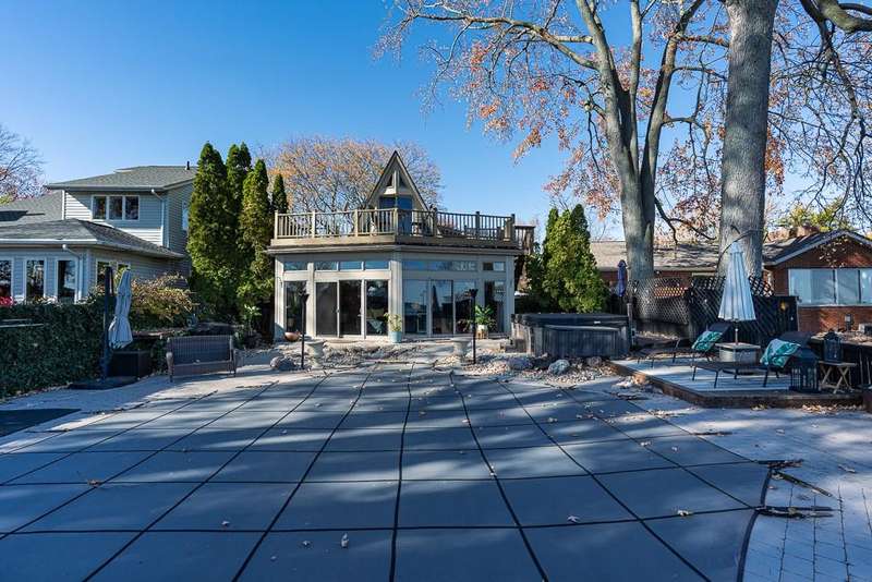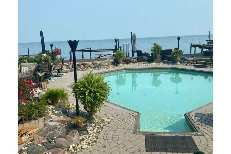 DON’T MAKE A MOVE WITHOUT stepping through the gate — you’ll instantly know you’re somewhere truly special. Imagine coming home after a long day to your own private chalet right on beautiful Lake St. Clair. This charming A-frame waterfront home blends character, luxury, and upscale cottage vibe living. The exterior features multiple stone fountains, paver patio, brick firepit, dock, boat hoist, hot tub, in-ground heated pool, and whimsical gardens — all set against breathtaking Lake St. Clair views. Step inside and be welcomed by soaring cathedral ceilings, a two-story natural stone fireplace, leaded glass window, and an abundance of natural light. The gourmet kitchen will delight any chef, featuring ceramic floors, recessed lighting, large tile counters, custom cabinetry, and high-end stainless steel appliances — including Amana refrigerator, Bosch dishwasher, Jenn-Air microwave, and a nearly new Frigidaire Gallery stove. The dining area is surrounded by windows showcasing serene garden views. The main level offers two bedrooms, a full ceramic bath with a glass shower, elegant vanity, and recessed lighting. Upstairs, the primary suite is a private retreat complete with wood floors, vaulted ceilings, and a luxurious primary bath featuring a jetted tub, oversized glass shower, and exquisite tilework. Additional highlights include a spa room, laundry area with electric panel, newer roof, and thoughtful details throughout — from ceiling fans and recessed lighting to extensive custom tile and craftsmanship. With 3 bedrooms, 2 full baths, and 2,121 sq ft of beautifully designed light filled living space, this home offers the perfect blend of relaxation and sophistication — ideal for everyday living or entertaining on the water. Minutes by car or boat to some great lakeside restaurants. Come experience the magic of L'anse Creuse Bay on Lake St. Clair where you could enjoy lakefront living — your private lakeside escape awaits!