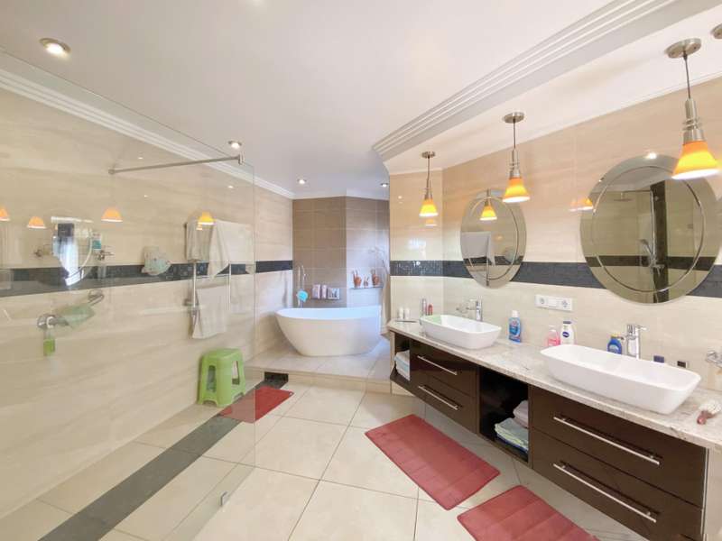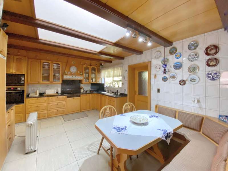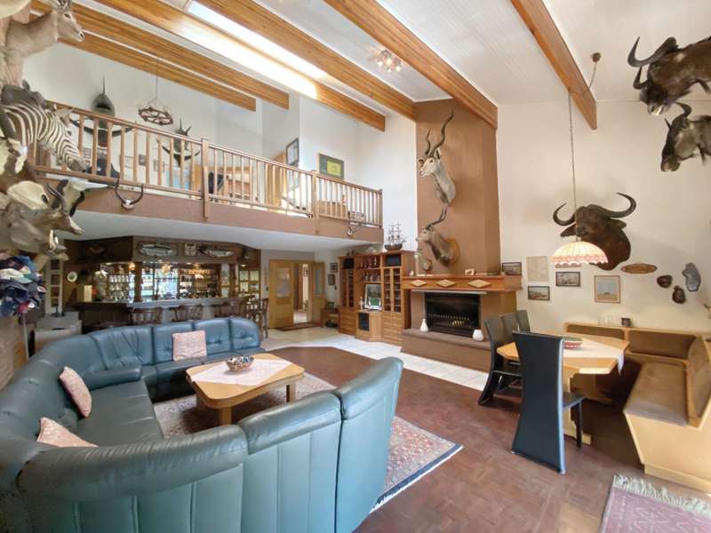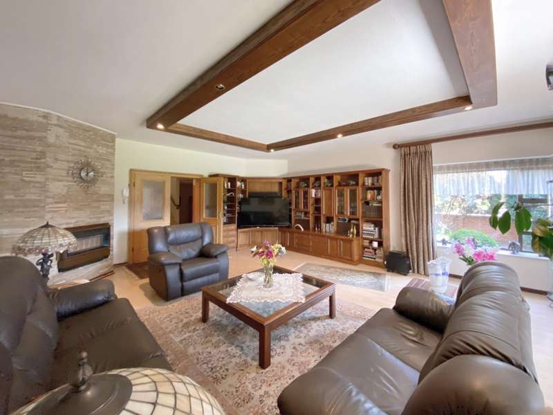 The entrance hall leads onto one of two living areas offering larger-than-normal proportions and fireplaces for cosy Winter nights. The spacious entertainment room offers a wood-burning fireplace with fitted gentleman?ÇÖs bar and double volume space with an open plan study located upstairs. The light wood kitchen offers generous cupboard space with a separate scullery and leads onto the private dining room.