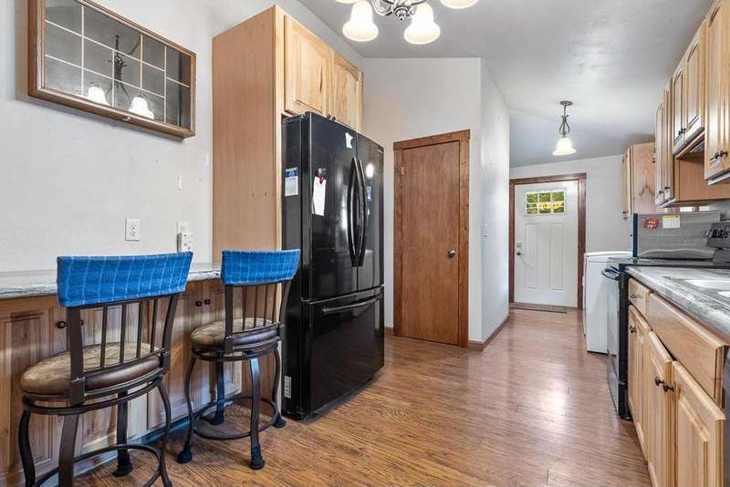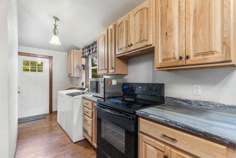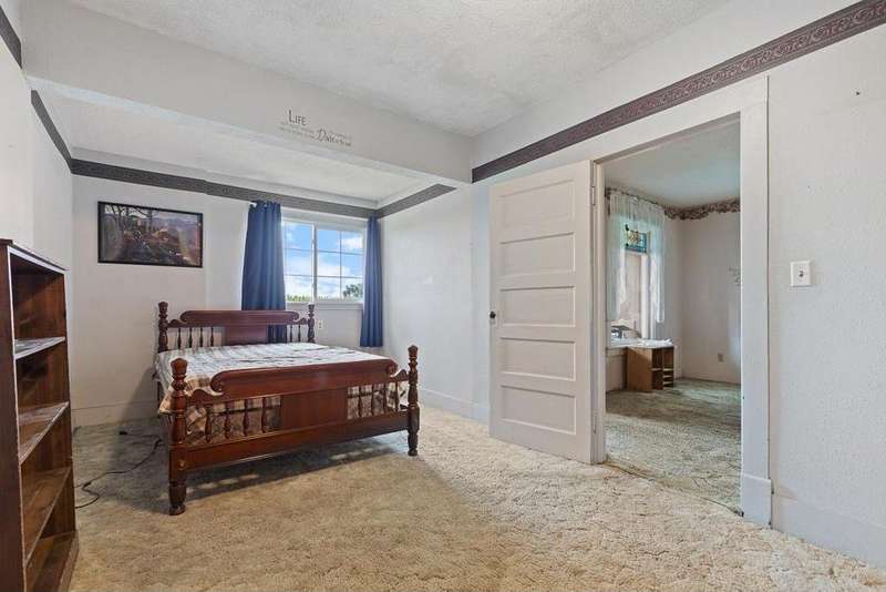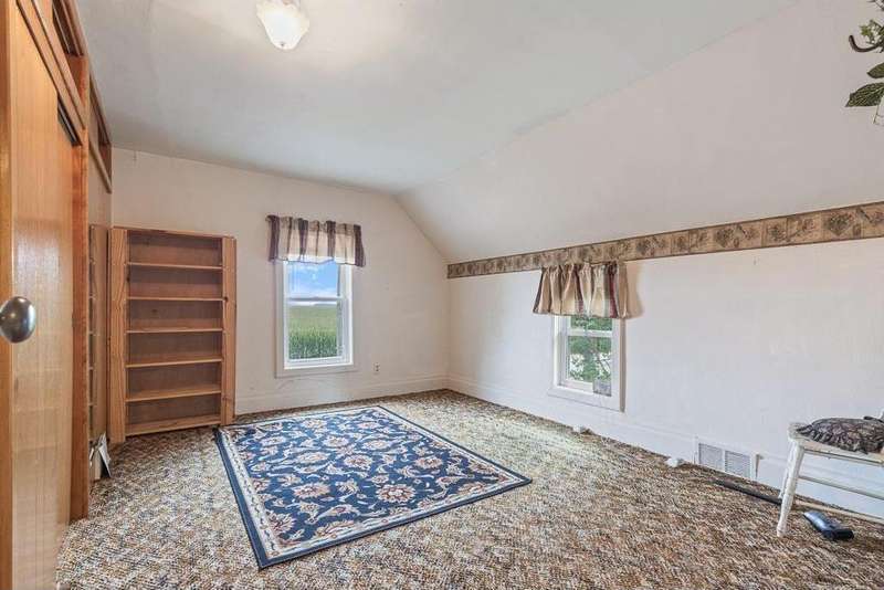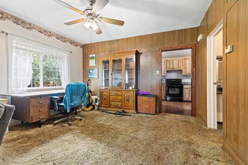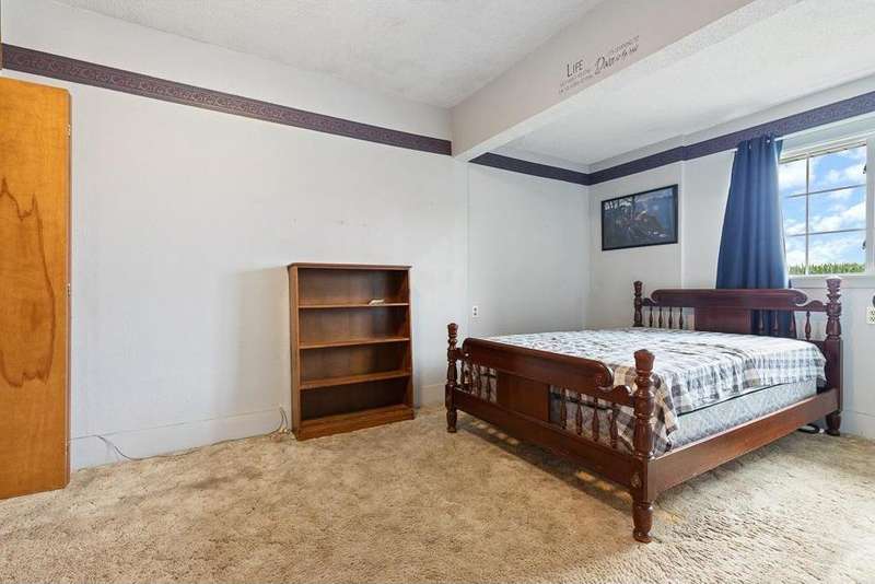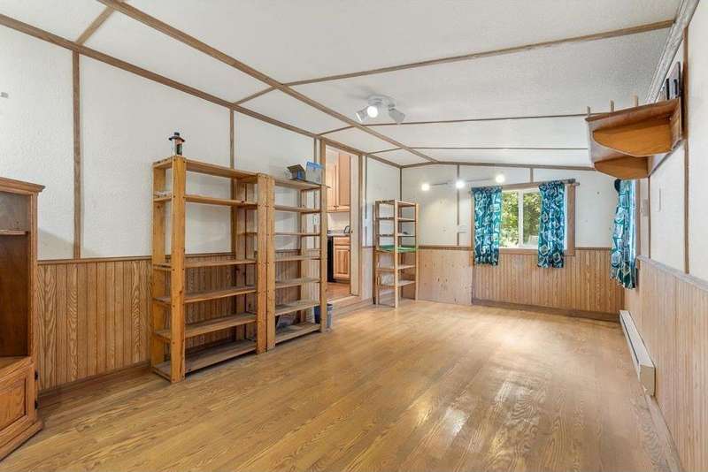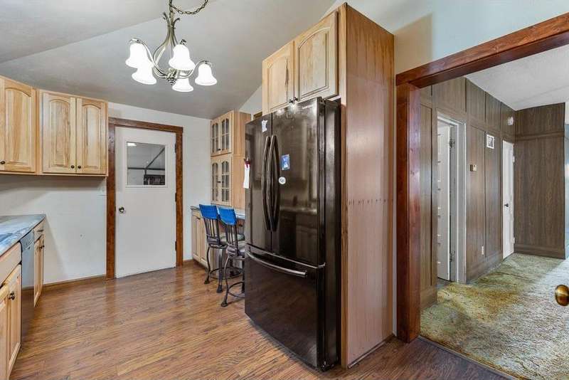 This 4-bedroom, 1-bathroom home is full of potential and ready for its next chapter. Step inside through the front porch to find a cozy main floor featuring a fully updated kitchen and the convenience of main floor laundry. The spacious living room offers plenty of versatility and could easily be arranged as both a living and dining area with room to add an office nook. A main floor primary bedroom and a generous bonus room—perfect for a den, family room, office, or game space—add to the home’s flexibility. Upstairs, three additional bedrooms await your personal touch, offering a great opportunity to create refreshed, inviting spaces for guests or an expanding family. The oversized attached garage provides ample space for parking plus a workshop or extra storage. Outdoors, you’ll love relaxing on the 192 sq ft deck overlooking the peaceful backyard, complete with mature trees, room for gardening, and plenty of open space to enjoy. Beyond the treeline, a pasture and fruit trees extend the property’s charm and possibilities. This property is ready for someone with vision to bring it to life—don’t miss the chance to make it yours!