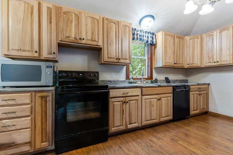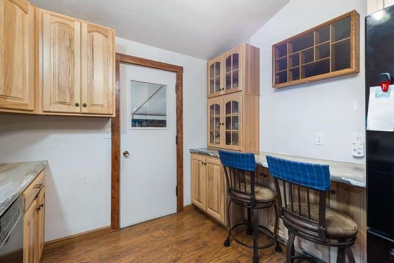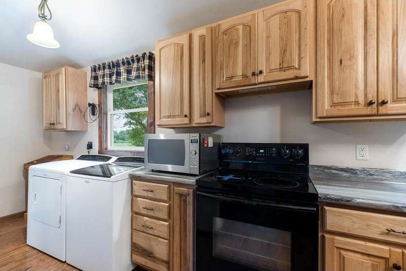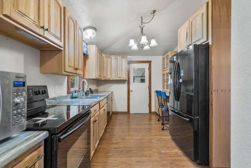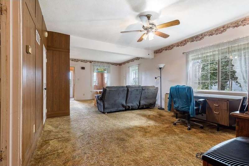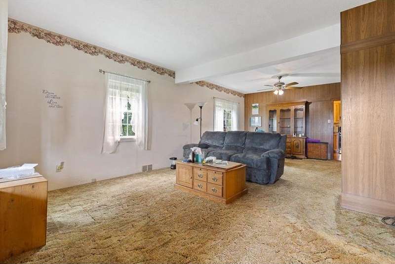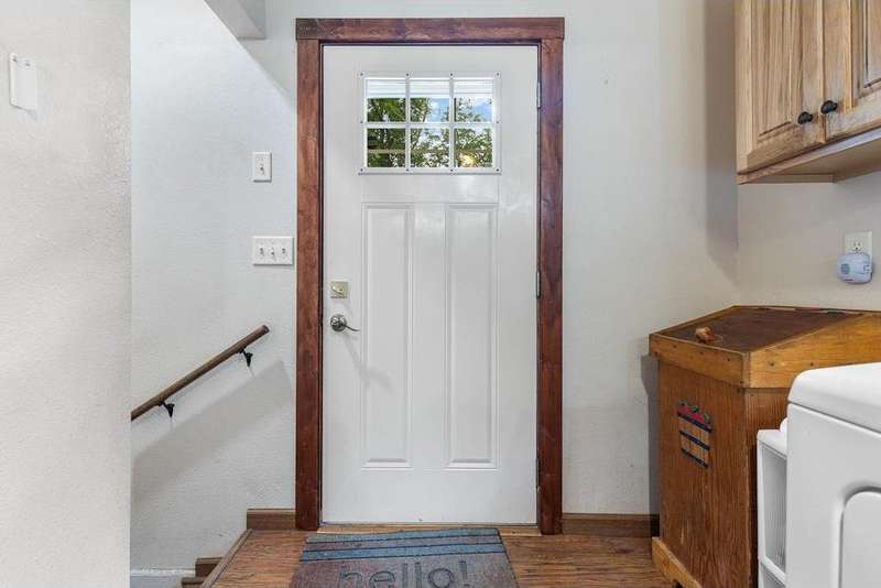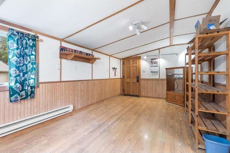 This 4-bedroom, 1-bathroom home is full of potential and ready for its next chapter. Step inside through the front porch to find a cozy main floor featuring a fully updated kitchen and the convenience of main floor laundry. The spacious living room offers plenty of versatility and could easily be arranged as both a living and dining area with room to add an office nook. A main floor primary bedroom and a generous bonus room—perfect for a den, family room, office, or game space—add to the home’s flexibility. Upstairs, three additional bedrooms await your personal touch, offering a great opportunity to create refreshed, inviting spaces for guests or an expanding family. The oversized attached garage provides ample space for parking plus a workshop or extra storage. Outdoors, you’ll love relaxing on the 192 sq ft deck overlooking the peaceful backyard, complete with mature trees, room for gardening, and plenty of open space to enjoy. Beyond the treeline, a pasture and fruit trees extend the property’s charm and possibilities. This property is ready for someone with vision to bring it to life—don’t miss the chance to make it yours!