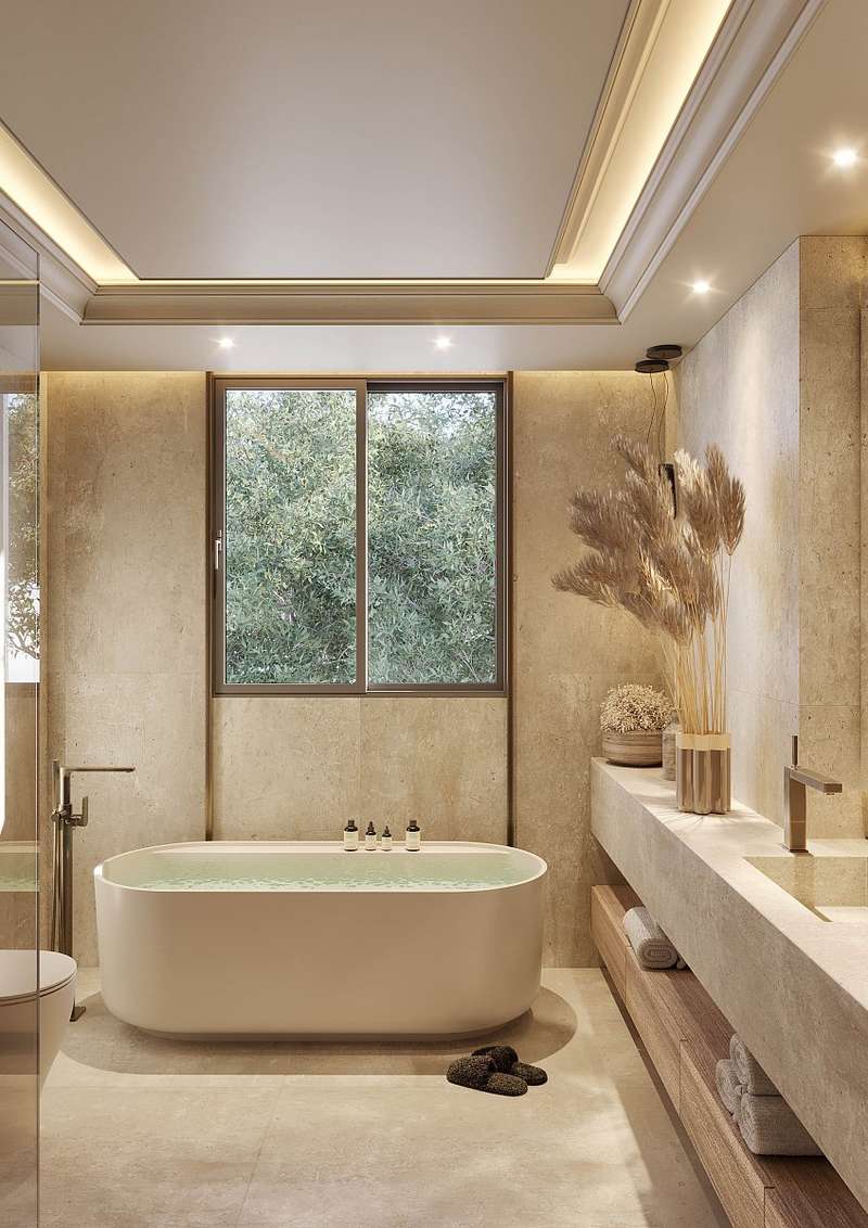The communal areas are conceived as an extension of the natural landscape, with a choice of outdoor and indoor swimming pools, landscaped gardens and relaxing green zones. Residents can enjoy wellness facilities including a spa and fitness suite, as well as co-working spaces and social areas that encourage a sense of community. The rooftop pool and solarium of the penthouses offer panoramic sea views and spaces designed for Mediterranean entertaining.