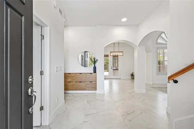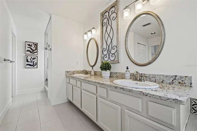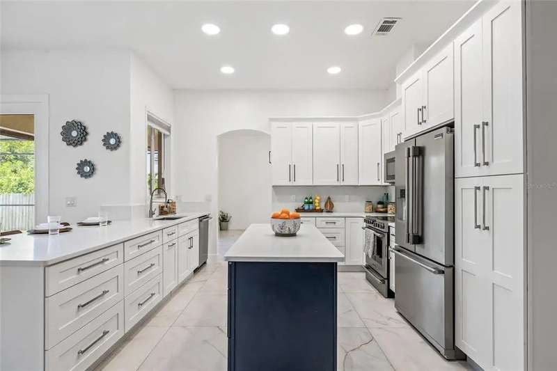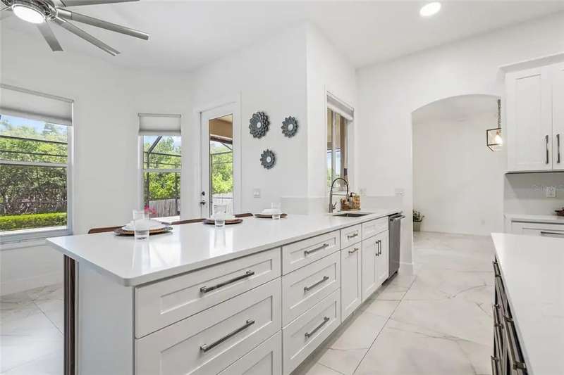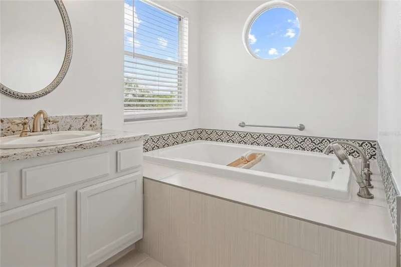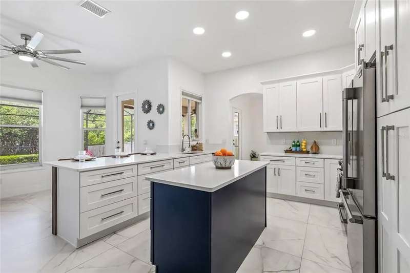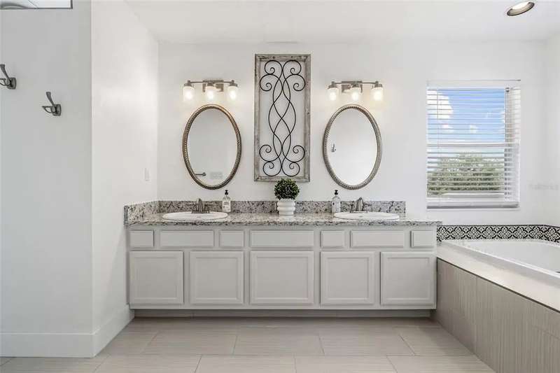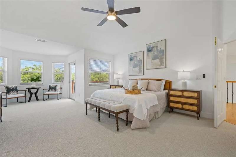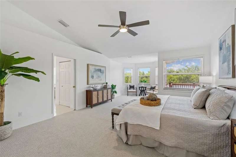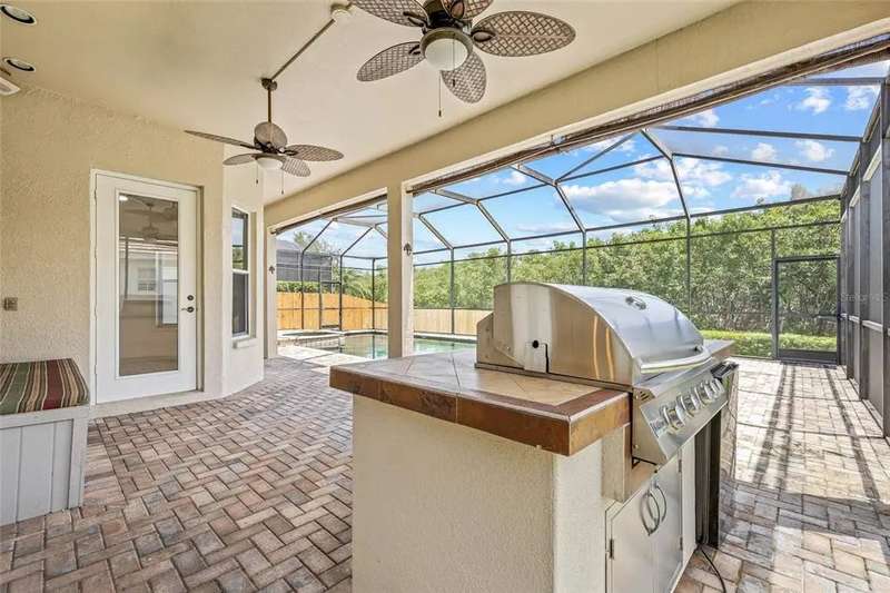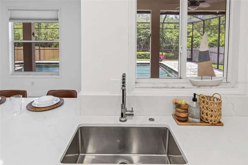 Premiere living in the highly desirable gated community of Placido Bayou. Ready to be enjoyed, this two-story modern beauty boasts 5 bedrooms, 3.5 baths and a lush backyard pool oasis perfect for your outdoor enjoyment. Positioned on a quiet street in the Estates section of Placido Bayou, the home showcases the best aspects of FL living featuring dining rooms that extend to an outdoor kitchen, sprawling pool/spa and a pool half-bathroom accessed from the patio. Approach the home’s covered front entry and step inside to fall in love with the soaring ceilings and abundant light in the free-flowing living and dining room graced by exquisite ceramic tile flooring. Travel to the magnificent gourmet kitchen fully equipped with new appliances and custom cabinetry which flows between a dinette and stunning hearth room where you can enjoy a crackling fire after selecting your favorite novel from the built-in storage cabinets. Adjacent to the hearth room you’ll find a tranquil, ground-level bedroom which could also serve beautifully as a home office with an adjacent full bathroom. Venturing up the grand staircase to the second level, you’ll find another beautiful space for a second-level home office, or easily used as a 5th bedroom. Step beyond the sliding glass doors which lead out to the recently updated second story deck. Connected to this terrace is the oversized primary suite, perfectly laid out with a sitting room ideal for a coffee bar to craft your favorite beverage and enjoy sunrise on the terrace. The primary en-suite bathroom has two large walk-in closets, a soaking tub, separate frameless glass shower and a dual-basin vanity. Down the hall, you will find two additional large bedrooms with a shared hall bath. Unique compared to many homes in Placido Bayou, the spacious wrap-around driveway allows for plenty of parking and an entrance to the side-facing spacious garage. Placido Bayou is a hidden gem with sidewalks for exercise, lakes for fishing and a bird-enthusiast’s dream. Ideally located for quick access to downtown St. Petersburg and Tampa via the Gandy Bridge, residents have quick commutes to private aviation, two international airports and sugar sand beaches.